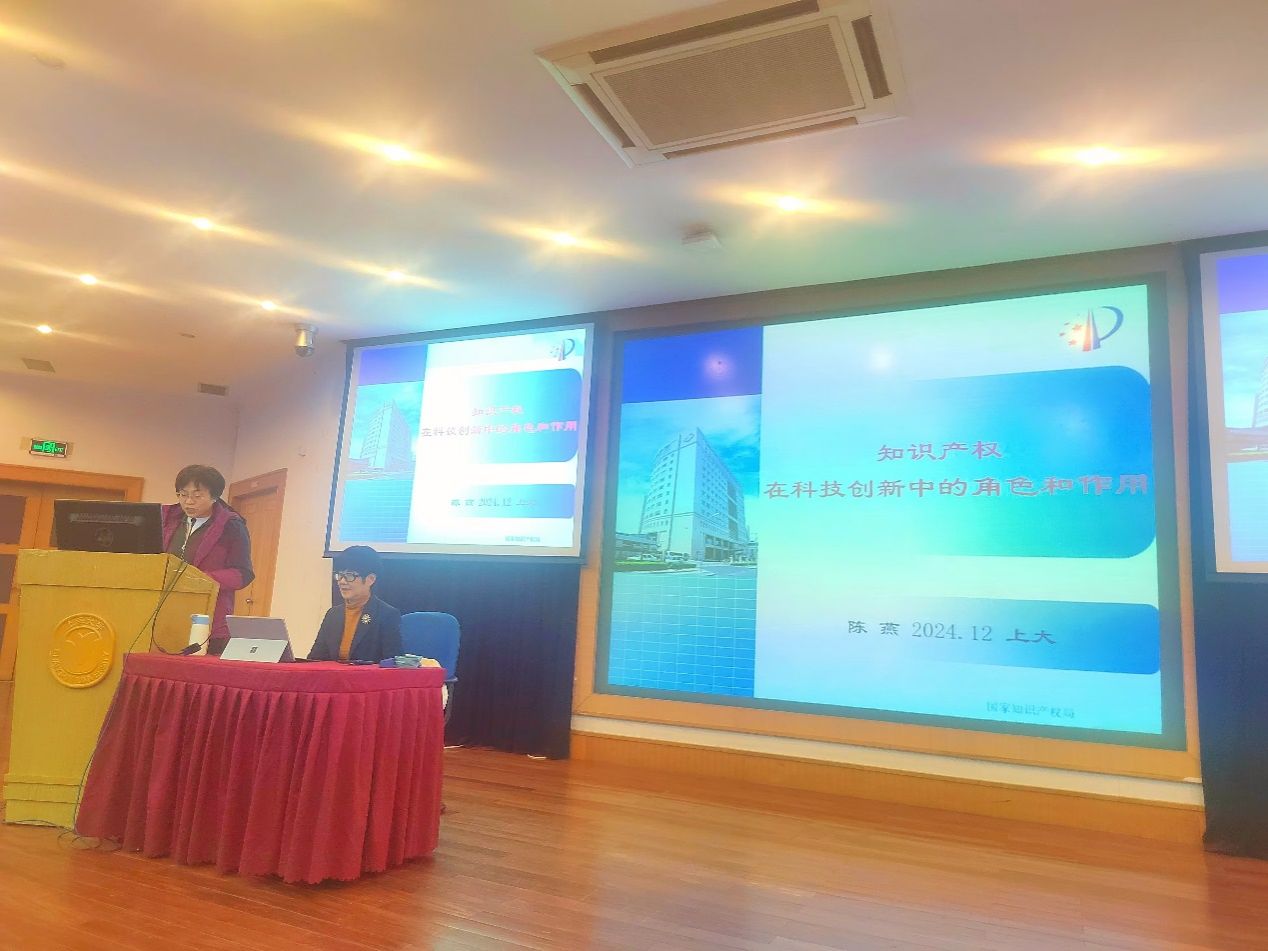 12月20日,中国知识产权报社原党委书记、副社长,三级研究员,上海大学特聘教授陈燕老师主讲的“知识产权在科技创新中的角色与作用”高端讲座在宝山校区J202方润华讲堂顺利举办。该次讲座由上海大学科研管理部、法学院、知识产权学院、上海大学知识产权信息服务中心联合举办,来自科研管理部、法学院、知识产权学院、图书馆以及全校各理工科学院的师生近200人前来听讲。讲座由科研管理部副部长、质量管理办公室主任谢为群主持。