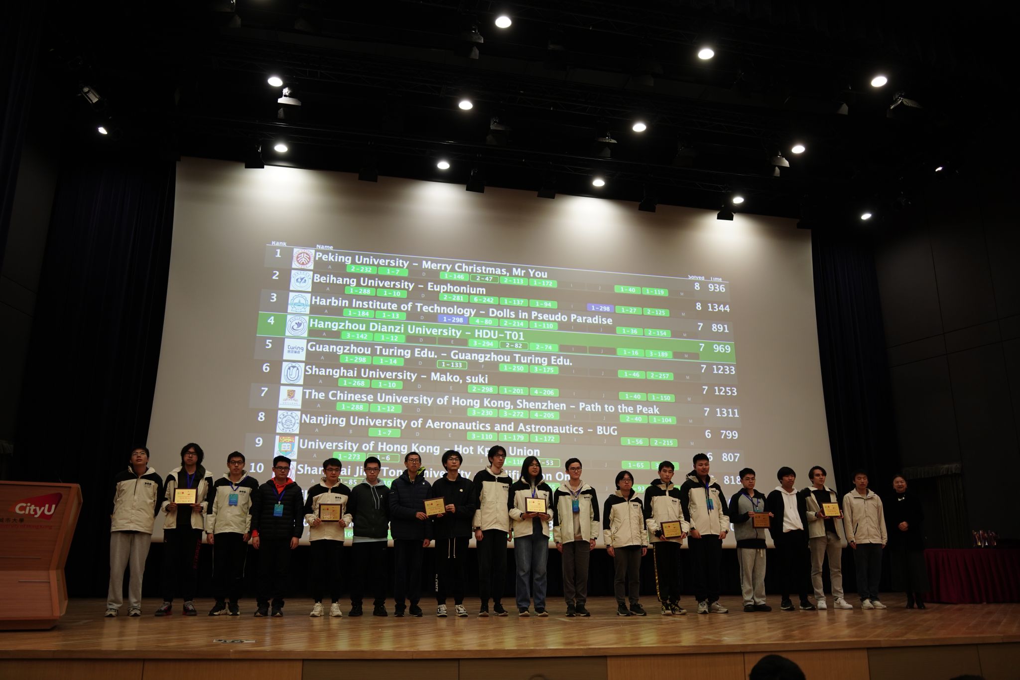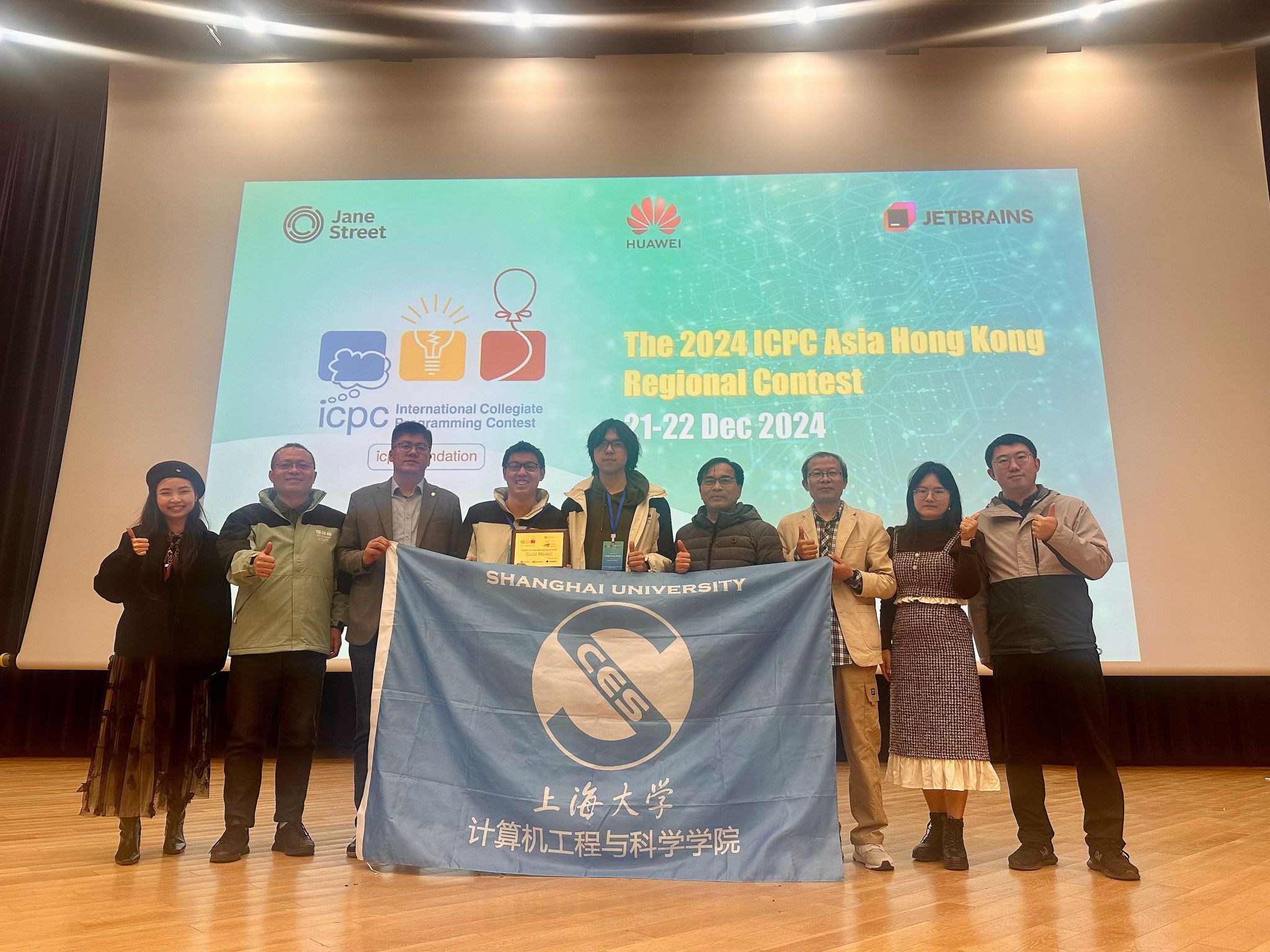 近日,由香港理工大学和香港城市大学联合承办的第49届国际大学生程序设计竞赛(ICPC)亚洲区域赛(香港)成功举办。计算机学院副院长李晓强、专业教师沈俊作为指导教师,带领陶钧、松浩然、耿鹏成三位队员组成的上海大学代表队参加比赛。