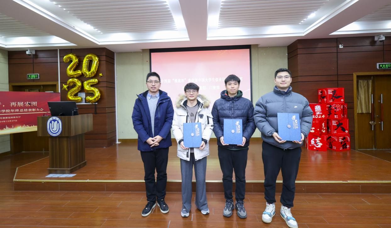 在教师表彰之后,对各个领域取得成绩和荣誉的学生进行了表彰。首先表彰了第十四届“挑战杯”秦创原中国大学生创业计划竞赛银奖获得者代表宋子彦、李晨阳、门建炜。由校团委书记王鸿栋为他们颁奖。