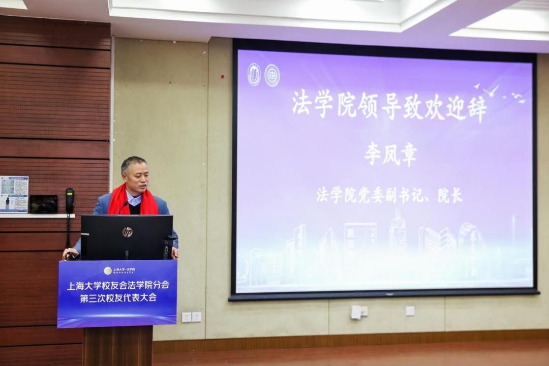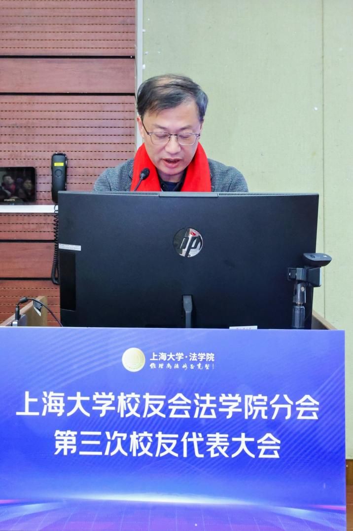 为了进一步密切广大校友和学校学院的联系交流,打造校友与学校学院共同发展的命运共同体,为上海大学和上海大学法学院的高质量发展凝聚智慧力量,上海大学校友会法学院分会第三次校友代表大会于12月29日上午在上海大学宝山校区东区蔡冠深讲堂顺利召开。上海大学对外联络处副处长、校友办副主任杨静,法学院党委书记徐国明,法学院党委副书记、院长李凤章,法学院党委副书记、副院长于伟,法学院校友分会第二届理事会会长石峰及来自全国各地的近百名校友代表参加了本次大会。