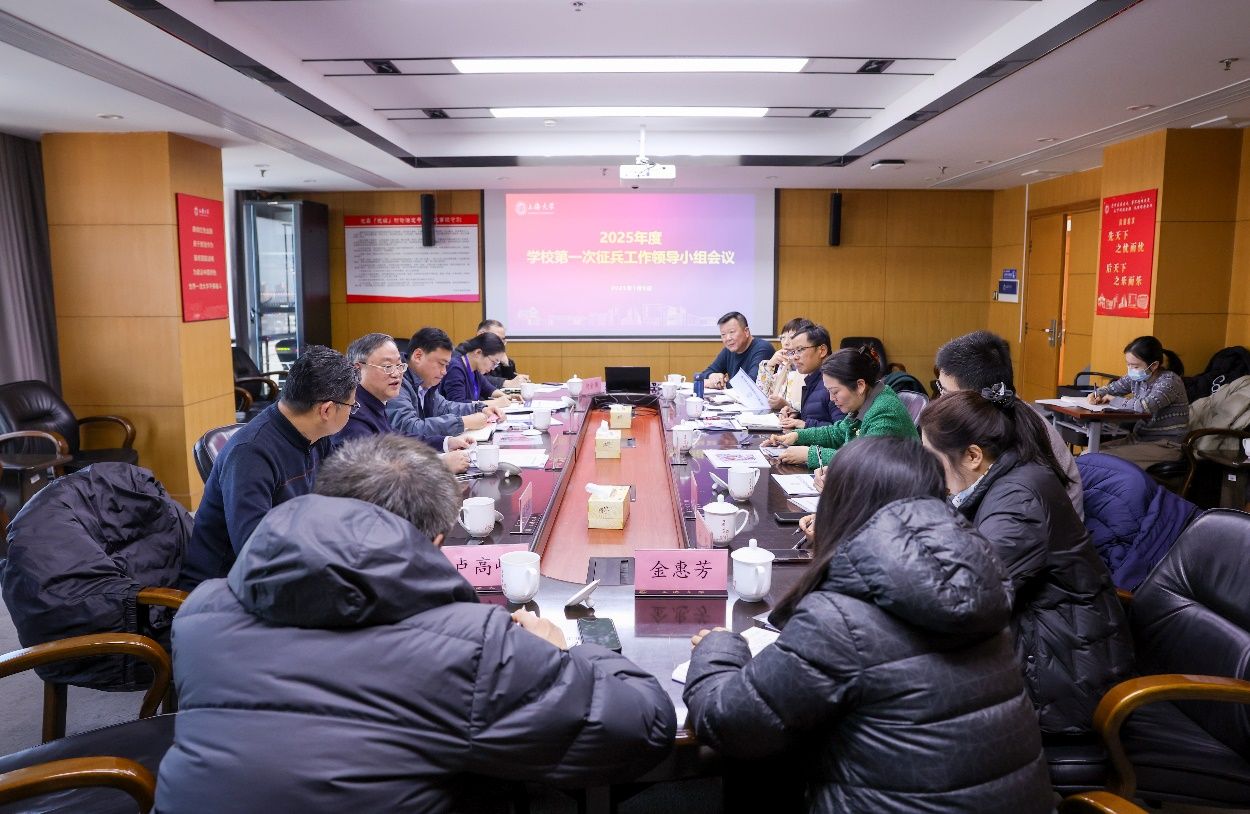 2025年1月9日上午,上海大学2025年第一次征兵工作领导小组会议在宝山校区行政楼803会议室举行。征兵工作领导小组组长、校党委书记成旦红,党委副书记、副校长胡大伟,领导小组成员单位负责人参加会议。