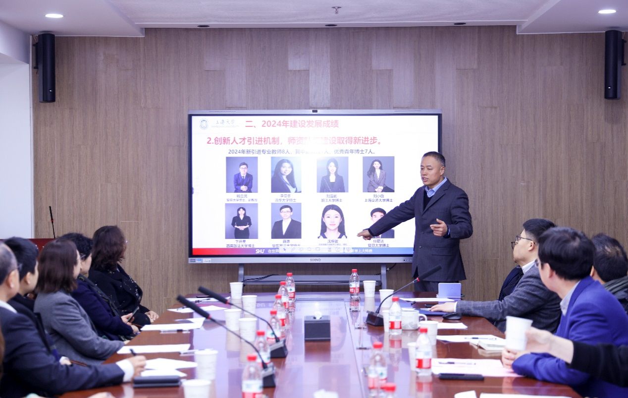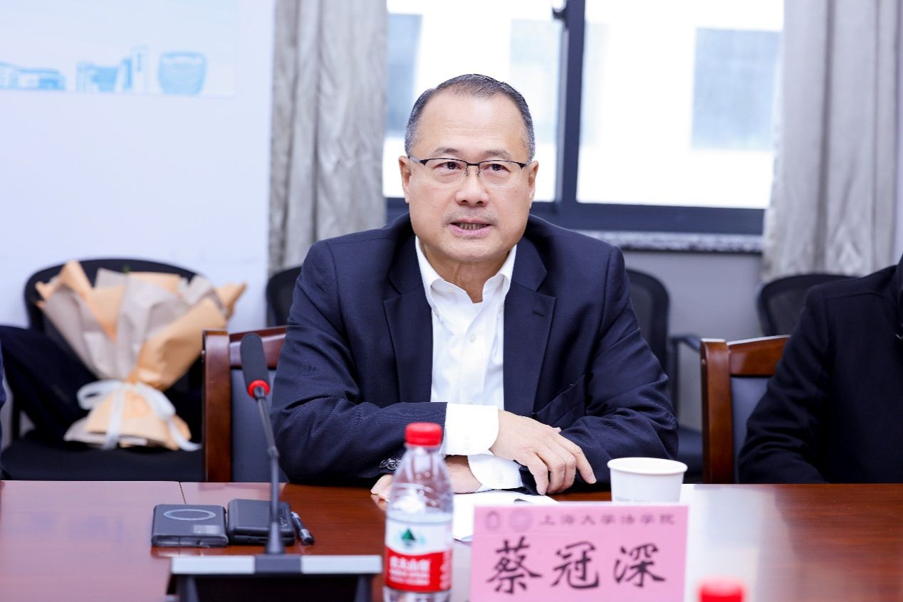 2025年1月12日,全国政协常委、香港中华总商会会长、粤港澳大湾区企业家联盟主席、香港新华集团主席、上海大学法学院名誉院长蔡冠深博士来到上海大学法学院,听取学院一年来的建设发展情况,同学院师生座谈交流并对学院人才培养、科学研究、师资队伍建设等给予深入指导。上海大学党委副书记段勇教授主持师生座谈会。