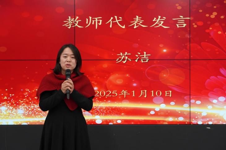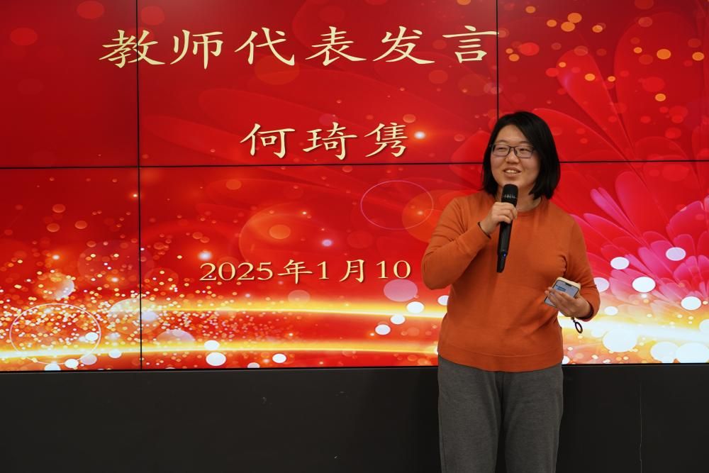 颁奖环节后,各条线获奖教师代表分别进行了发言。刘峰老师以幽默的语言表达了对于老师们的衷心祝愿,何琦隽老师向帮助和支持她工作的老师和学生们表示由衷感谢,苏洁老师用“感谢”、“看见”、“期待”三个关键词涵盖了对过去一年工作的总结和对学院未来发展的期待与祝福。