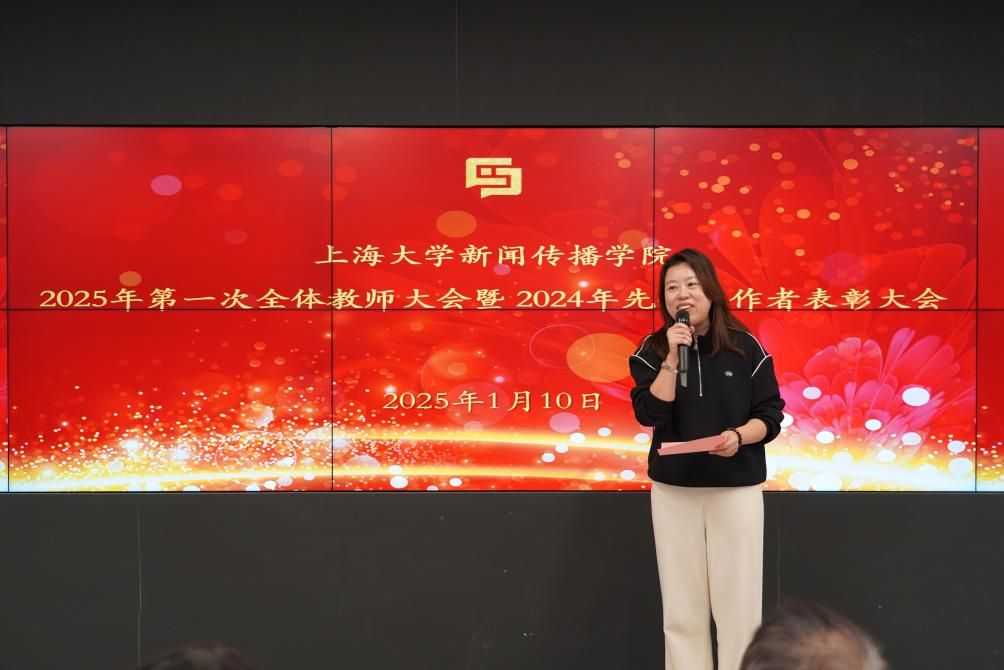 岁序易,华章新。2025年1月10日下午,上海大学新闻传播学院2025年第一次全体教师大会暨2024年度先进工作者表彰大会在延长校区智能媒体创新实验中心104室举行,新闻传播学院党政领导班子成员及全体教职工参加了此次大会。大会由学院党委副书记、副院长王智君主持。
