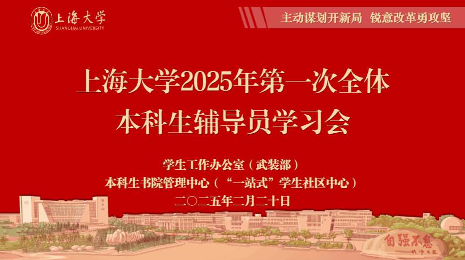 2025年是学校“十四五”规划的收官之年、“十五五”规划的谋划之年,也是学校深化教育教学改革、奋力推进中国特色、世界一流大学建设的关键之年。辅导员作为学校思想政治工作队伍的骨干力量,责任重大、使命光荣,让我们以“功成不必在我”的境界和“功成必定有我”的担当,凝心聚力、锐意进取,共同谱写上海大学学生工作的新篇章!