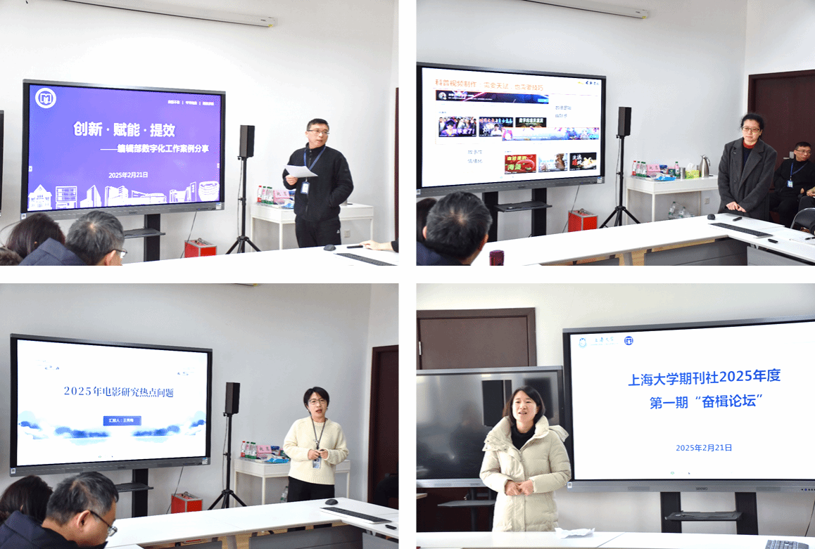 随后,2025年度第一期“奋楫论坛”正式开启,论坛分为四个主题报告。《上海大学学报(自然科学版)》的孟庆勋以“创新·赋能·提效——编辑部数字化工作案例分析”为题,深入剖析了信息化背景下编辑部工作的典型案例,强调了信息化在提升编辑部工作效率和创新能力方面的重要作用。《自然杂志》的段艳芳则就论文视频摘要的制作进行了深入探讨,介绍了视频摘要在学术传播中的重要作用,为期刊传播方式的创新提供了新的思路。《电影理论研究(中英文)》的王秀梅深入剖析了2025年电影研究的热门议题,为期刊选题策划注入了前沿的学术灵感。《应用数学和力学(英文)》的杨燕分享了其成长经历和获奖经验,为期刊同仁提供了宝贵的参考。