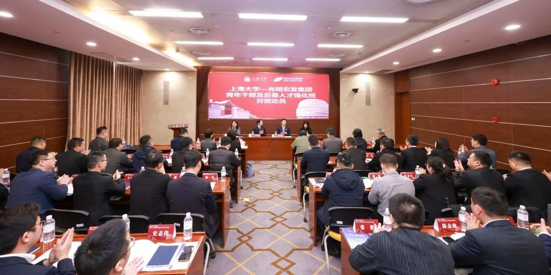 为充分发挥高校与企业双方优势,发挥高等教育为社会、为企业服务的功能,助力企业精准培养人才,上海大学经济学院与光明农发集团深化合作,通过“上海高校专业培训资源为主、外部专家专题授课以及农发内训师授课为辅”的方式,组织开展光明农发集团青年干部及后备人才强化培训班。2月28日,培训班在上海大学正式启动。双方领导班子及光明农发集团培训人员参加开班动员会议,光明农发集团党委副书记、纪委书记、工会主席严如娟主持会议。