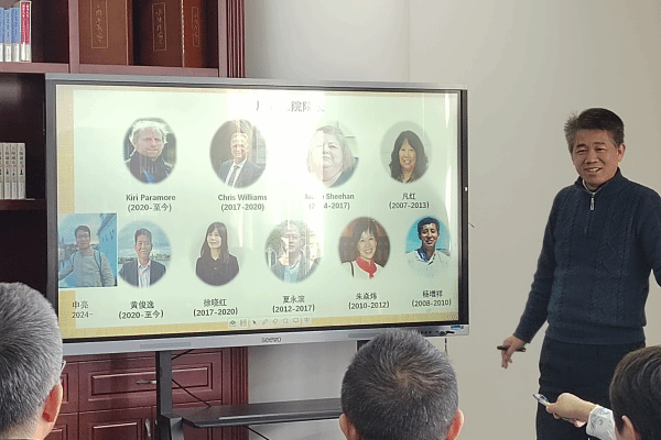 李颖洁副会长总结了2024年分会工作,包括持续开展"知华导师"项目,成功申请市会民间外交项目,与诸暨分会开展科创交流合作等,并对2025年工作进行展望。同时,作为国际教育学院院长,她介绍了上海大学国际学生培养情况,学校目前国际留学生超3100名,其中学历生超1000名,成绩斐然。刚刚卸任爱尔兰科克大学孔子学院院长的黄俊逸学长分享了科克孔院的过去、现在和未来的发展,并在爱尔兰联合其他三所兄弟孔院,积极推广中文,传播中华文化的故事,也展现了一些海外文化交流所取得的成果。