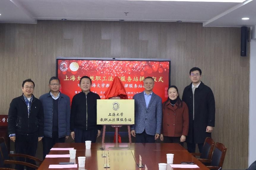 为深入贯彻落实依法治校理念,切实保障教职工合法权益,为全校教职工提供免费的优质法律服务,3月6日上午,上海大学教职工法律服务站揭牌仪式在上海大学宝山校区法学院304会议室顺利举行。上海大学党委副书记段勇,党委常委、党委统战部部长、党委教师工作部部长曹为民,党政办公室副主任、法律事务办公室主任陈敬根,党政办公室副主任、信访办公室主任凌长臣,校工会常务副主席顾莹,校工会副主席吕晓军、勾金华,法学院党委副书记、院长李凤章,党委副书记、副院长于伟,团委书记杨晓彤,北京市京师(上海)律师事务所律师南天奇,校工会李天博、梁爽、汪晨晨,上海大学公共法律服务中心指导老师杨立民及工作团队成员等30余人出席活动。仪式由法学院党委副书记、副院长于伟主持。