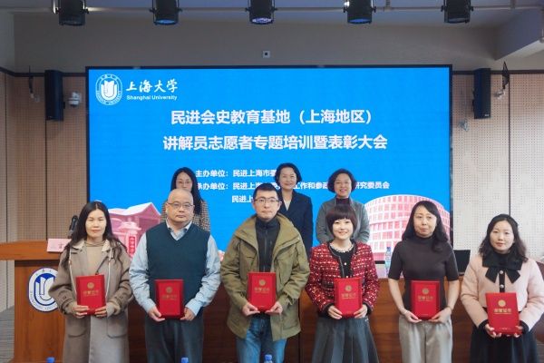 3月7日下午,民进上海市委在上海大学延长校区召开民进会史教育基地(上海地区)讲解员志愿者专题培训暨表彰大会。民进上海市委专职副主委杨蓉出席并讲话,上海大学党委统战部副部长谭婷出席并致辞。会议由民进上海市委会史工作与参政党理论研究委员会主任、民进上海大学委员会主委周丽昀主持。
