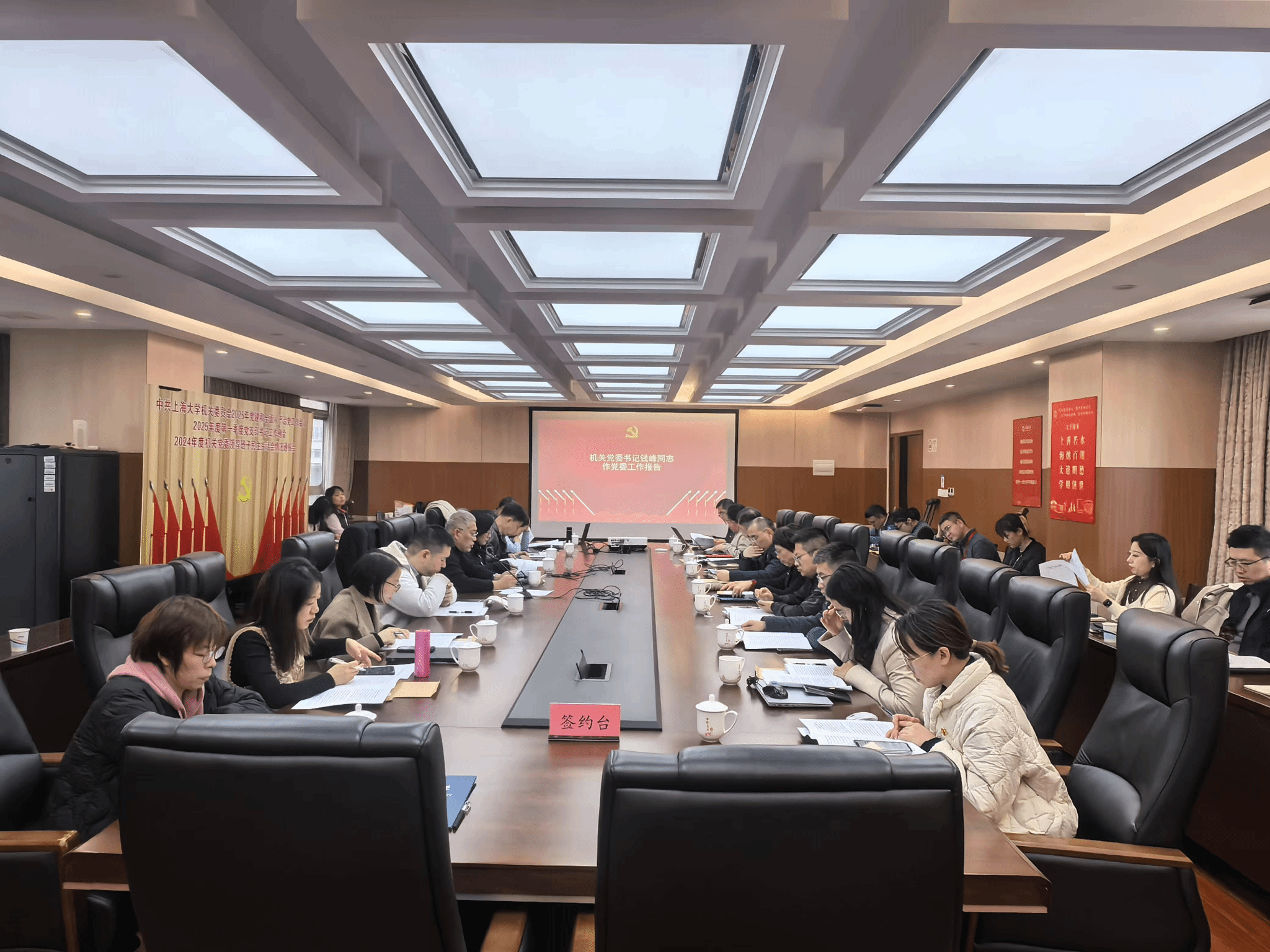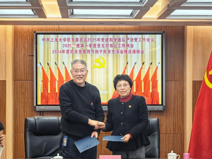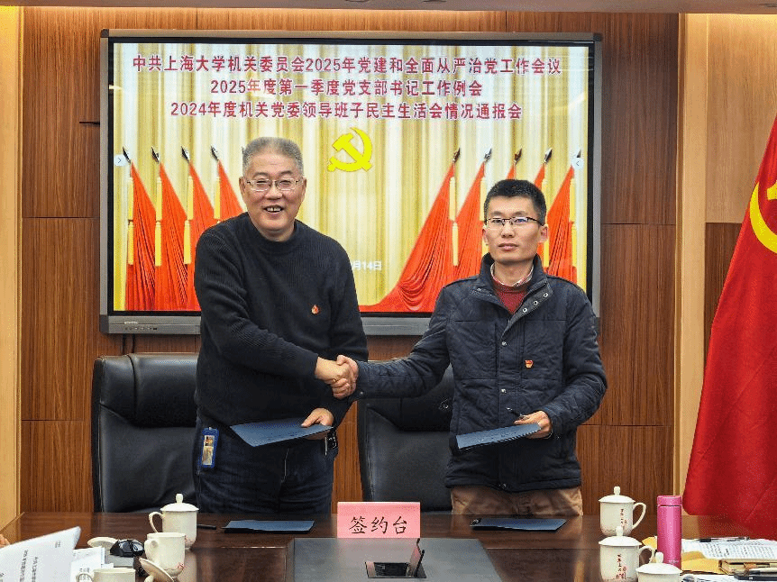 会上,机关党委下发了《上海大学机关党委2025年党的建设工作要点》,还和党支部签订了2025年全面从严治党责任书,压实党建和全面从严治党工作责任。
