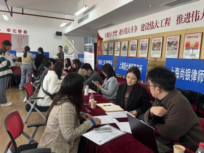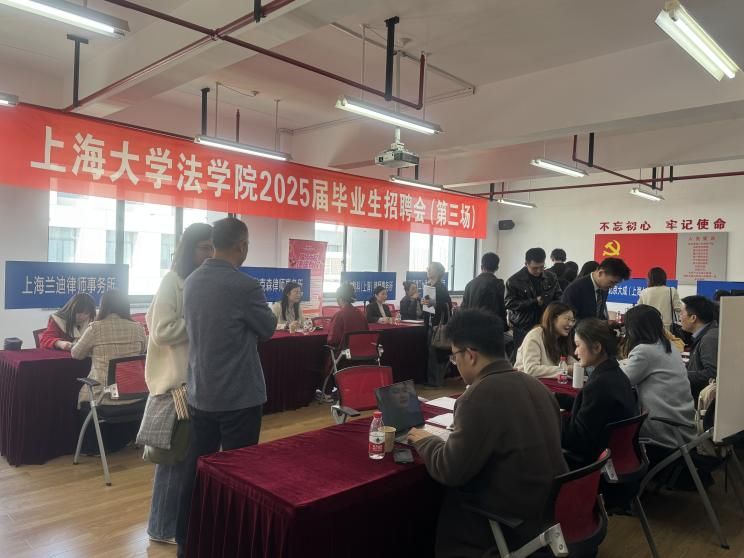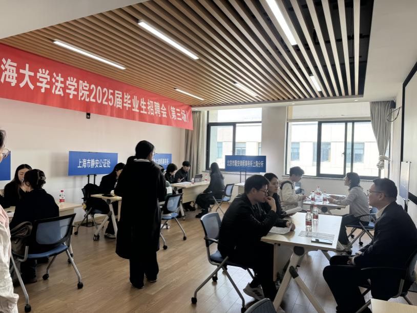 为满足广大用人单位对各类型人才需求,给用人单位和我校毕业生搭建一个双向选择的平台,助力毕业生高质量、多渠道就业,法学院于3月21日在宝山校区东区4号楼顺利举办2025届毕业生专场招聘会(第三场)。此次招聘会吸引了上海16家知名律所、公证处和企业参与,为毕业生提供了丰富的就业选择,实现人才与企业的双向奔赴。