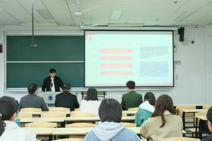 3月21日下午,春意盎然、樱花烂漫,法学院适龄青年征兵政策解读宣讲会在AJ104顺利举行,上海大学武装部副部长赵俊受邀进行征兵政策解读宣讲,法学院党委副书记、副院长于伟、法学院退伍学生李佳、石镇玮以及法学院适龄青年学生近百人参会。会议由法学院征兵工作联系人、法学院团委副书记王琦主持。