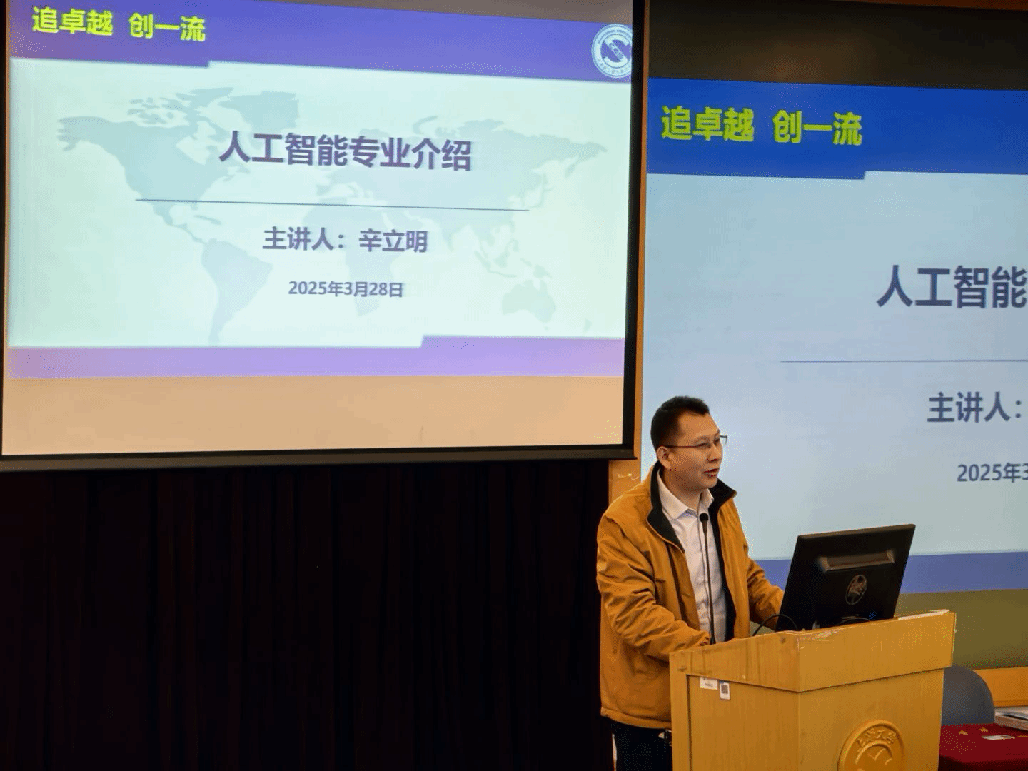 张景峤老师向同学们介绍智能科学与技术专业基本概况。张老师首先详细介绍了智能科学与技术专业的建立背景、发展历程以及与国家产业政策和地方发展规划的紧密联系。接着介绍专业以“自然智能机理”为核心,开设机器学习、智能控制、人工智能与脑认知等特色课程,并配备类脑实验室、感知计算平台等先进设施。师资团队中96%教师拥有博士学位,64%为高级职称,年轻学者占比1/3。学院通过ICPC国际竞赛、高性能计算大赛等赛事,助力学生实战能力提升,为学生提供较强就业竞争力。