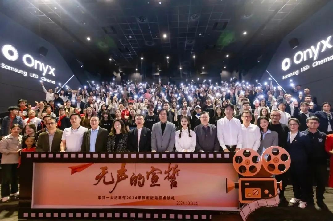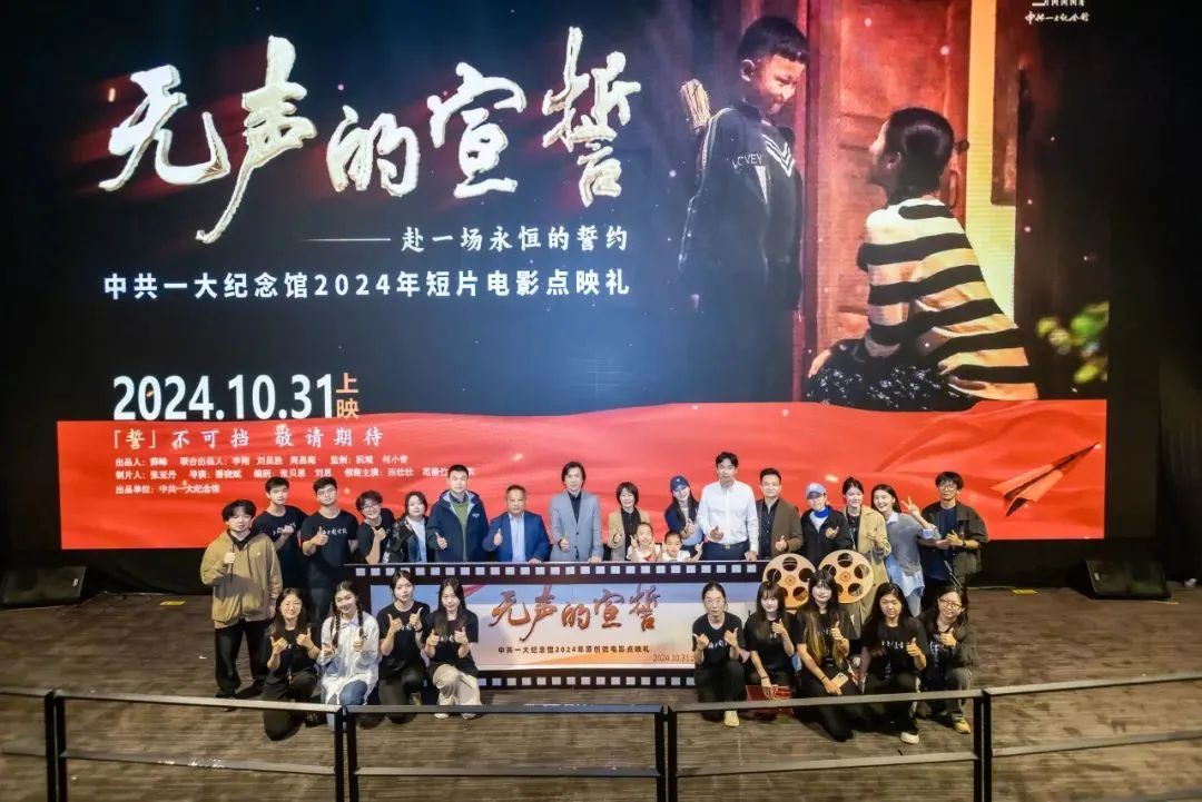 2024年10月31日下午,《无声的宣誓》点映礼举行,中共一大纪念馆、上海大学、上海东方网股份有限公司、上海腾洲建设集团股份有限公司、上海市第四聋校师生以及来自各个共建单位的党员代表等社会各界人士共三百余人出席仪式。电影仪式现场,影片主创团队也分享了影片的创作思路和幕后故事。