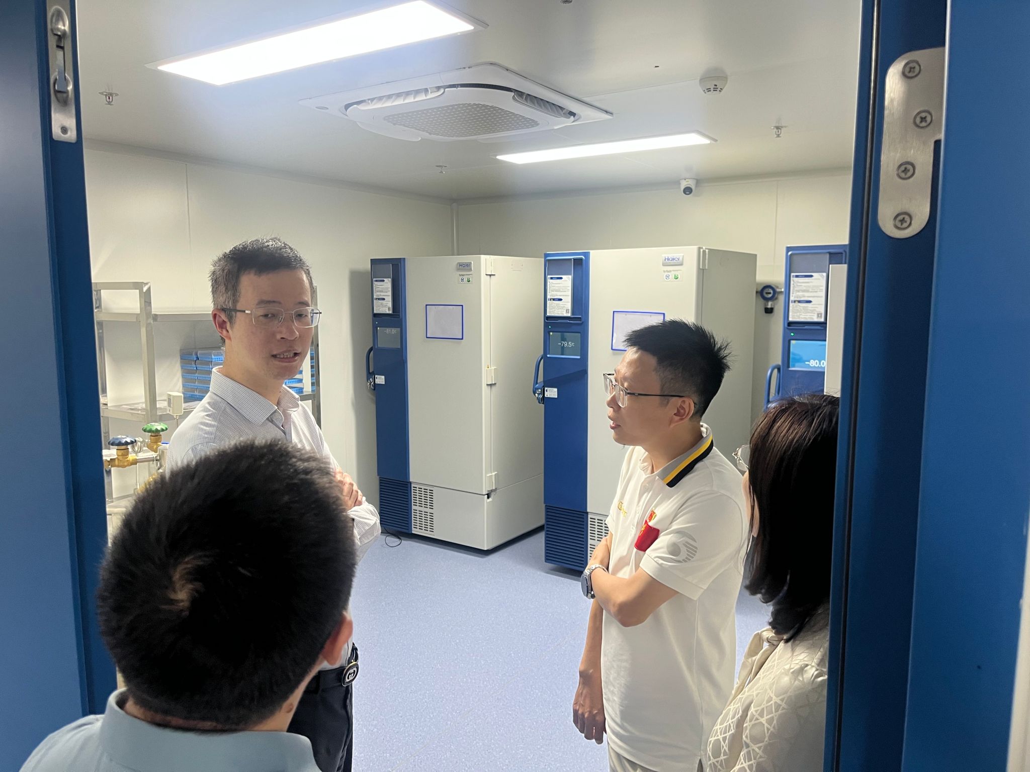 首先,生命学院一行参观了承葛医药集团新总部大楼。走进一楼展示厅,张帮周博士介绍了集团的发展历程,2016年创立以来就专注于人体微生态移植领域,是中国首家提供精准菌群移植整体解决方案的国家高新技术企业,业务领域横跨微生态健康、微生态诊断、微生态治疗、微生态药物和微生态医疗大数据挖掘等。肖传兴博士介绍了集团近年来开展的国家级、省部级科研项目,展现了集团在科学研究、技术创新和产学研合作上的突出成果;集团集研发、智造、销售、服务于一体,菌群研发小试、中试实验室,仪器设备一应俱全。