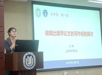 上海大学副研究员,期刊社办公室副主管王婧以“编辑出版学论文的写作经验探讨”为题,分享了在编辑论文写作过程中创新性、学术性、实用性等方面的建议,并通过详实案例呈现了编辑出版学研究写作的实践思考。结合个人研究体会,她建议,编辑出版学论文写作需坚持求真务实,注重规范性、严谨性,服务行业发展的实际需求。