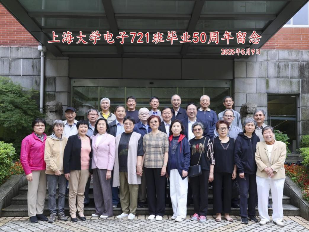 5月9日,上海大学(原上海工业大学)电子721班毕业50周年返校活动在延长校区南大楼举行。20余位古稀校友,跨越半世纪相聚母校校园,共忆往昔、共叙情谊。