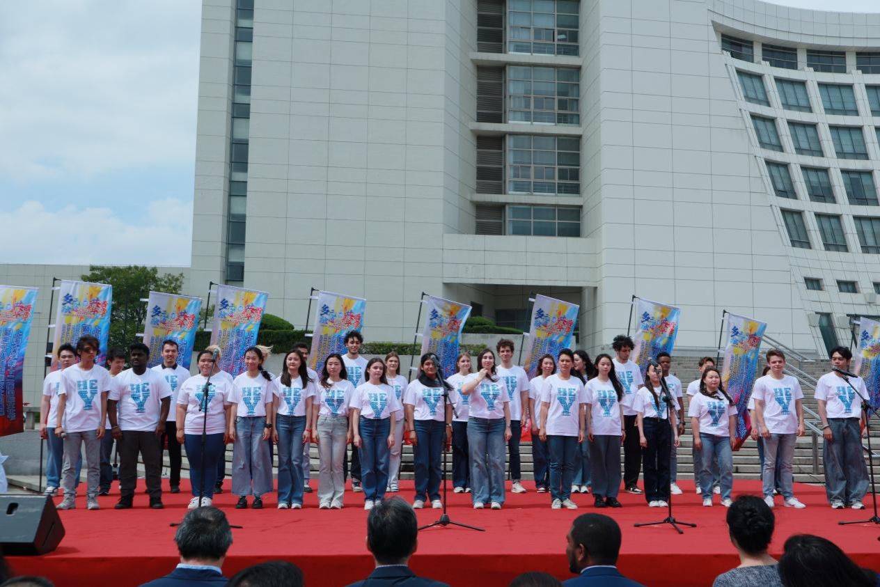 上海大学国际学生海翼合唱团为观众带来合唱表演《让世界充满爱&Golden Hour》,用歌声传递世界文化的多彩魅力。
