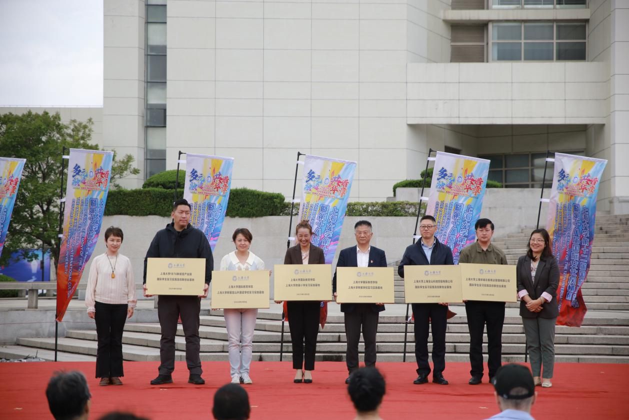 上海大学国际部党委书记王丽娜,上海大学国际部副部长、上海大学国际教育学院院长李颖洁为上海大学附属小学、上海大学附属学校、上海大学附属宝山外国语学校、上海宝山科技控股有限公司、上海芈城云集商业管理有限公司、1876新视觉产业园六家国际学生实习实践及创新创业单位授牌。
