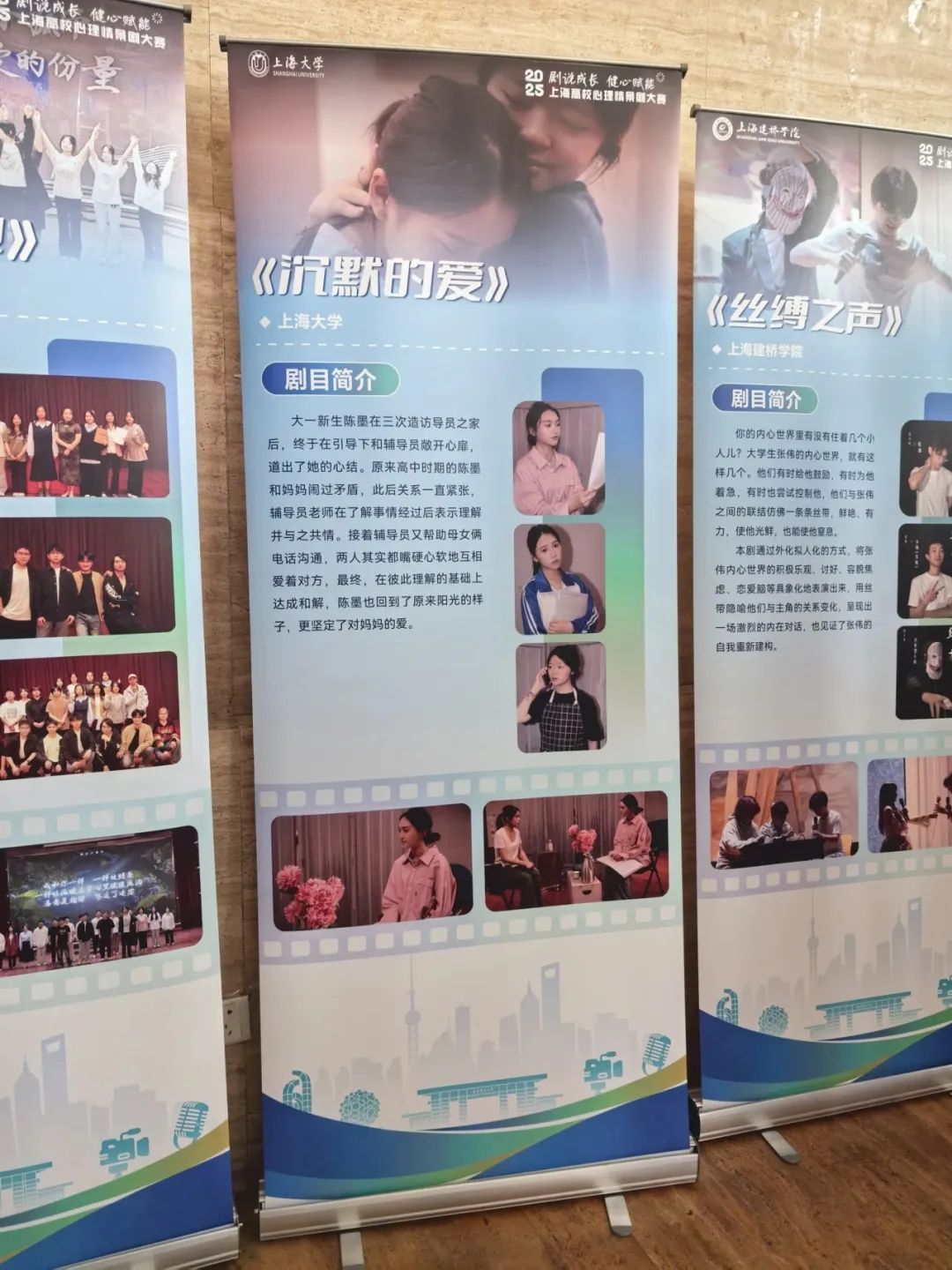 由上海大学学生工作办公室、上海电影学院和心理辅导中心联合出品的心理剧《沉默的爱》在2025上海高校心理情景剧大赛中挺进决赛,并获得了二等奖的好成绩,演员朱颍获得了最佳配角奖。