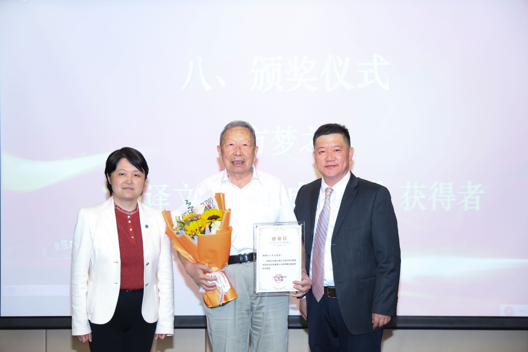大会举行了颁奖仪式。外国语学院党委书记吴蔚、院长尚新为方梦之教授(“翻译文化终身成就奖”获得者)、唐青叶教授(国家社科基金重大项目首席专家)以及外国语学院历任书记、院长献上鲜花并颁发感谢状,诚挚感谢他们对学院人才培养和学科发展做出的重要贡献。