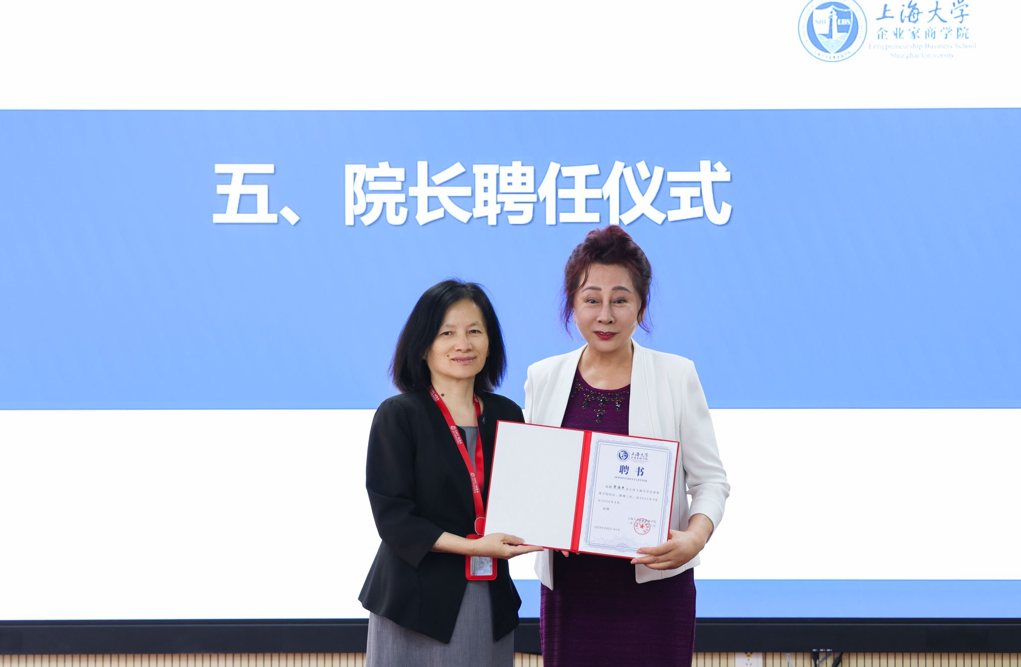 会上,上海经济管理中心主任朱明原宣读《关于成立上海大学企业家商学院理事会的通知》,第一届理事会共设理事长1人,副理事长1人,理事11人。聂清理事长为宋治平副理事长、于丽琴、任军、张国骥、褚贵忠、陈然、镇璐、吕康娟、聂永有、朱明原等理事颁发聘书。