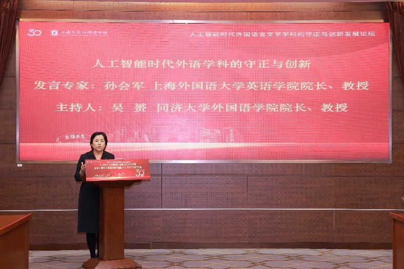 上海外国语大学英语学院院长孙会军教授阐述了面临全新挑战的外语学科应当在坚守人文内核与拥抱技术革新间寻找平衡,以学科建设为依托,通过构建AI赋能的课程体系、创新教学方法、强化师资培养等路径,系统性提升人才培养质量,推动中华文明在全球语境下的有效传播。
