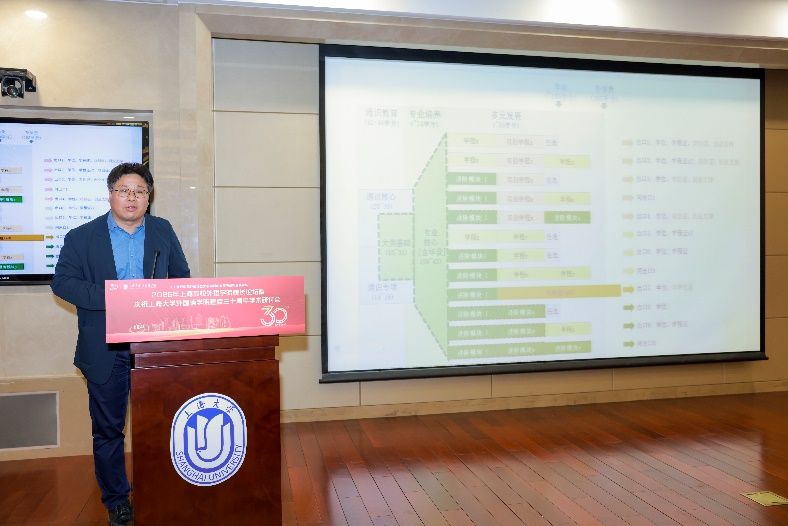 上海商学院商务外语学院院长段俊晖教授介绍了该院如何创新实施“三维融合”培养模式,通过“语言+商务+科技”的交叉培养,打造复合型人才核心竞争力,推行“学用结合、知行合一”的育人机制,为区域经济发展和国际化进程输送更多高素质人才。
