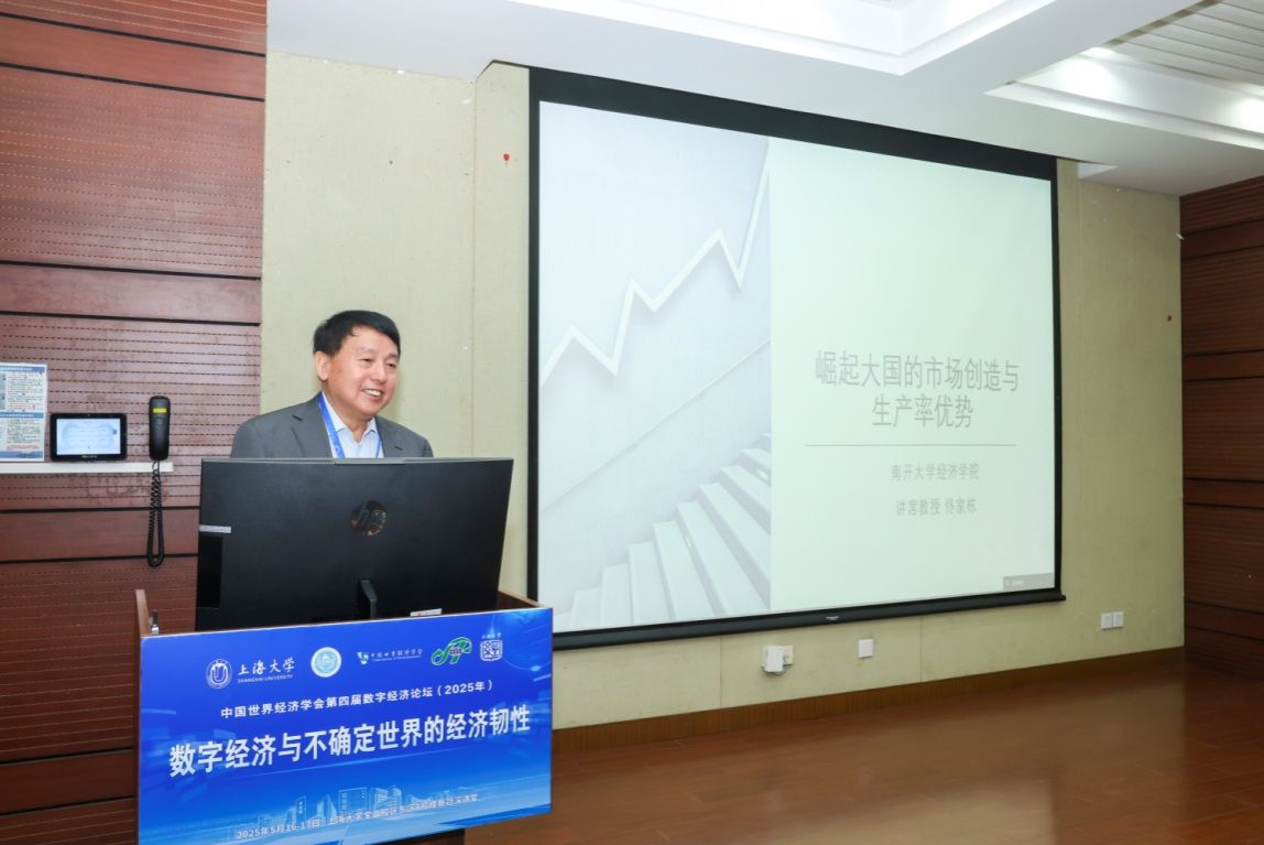南开大学讲席教授、原副校长、数字经济交叉学科中心主任佟家栋在“崛起大国的市场开拓、生产率与外部环境”的演讲中,指出历史经验表明,大国崛起必然伴随市场开拓、生产率提升与外部环境博弈的动态平衡。他以英美为例分析称,英国通过长达300年的军事竞争、殖民扩张和制度创新确立霸权,而美国则依托两次世界大战的产业机遇、技术资本协同效应及全球市场扩张实现崛起。聚焦中国崛起,佟教授强调,中国面临的外部压力与历史案例既有相似性亦有特殊性。不同于英美通过战争扩张路径,中国在和平发展框架下,凭借改革开放积累的制造业实力、数字经济新动能及市场结构转型,快速突破技术封锁与贸易围堵。在特朗普时代以来的系统性打压下,中国需以更开放的姿态深化要素市场改革,加速科技自立自强,同时警惕“选择性战略脱钩”风险,通过可持续的生产率提升和市场韧性,走出一条不同于传统霸权更迭的和平崛起之路。