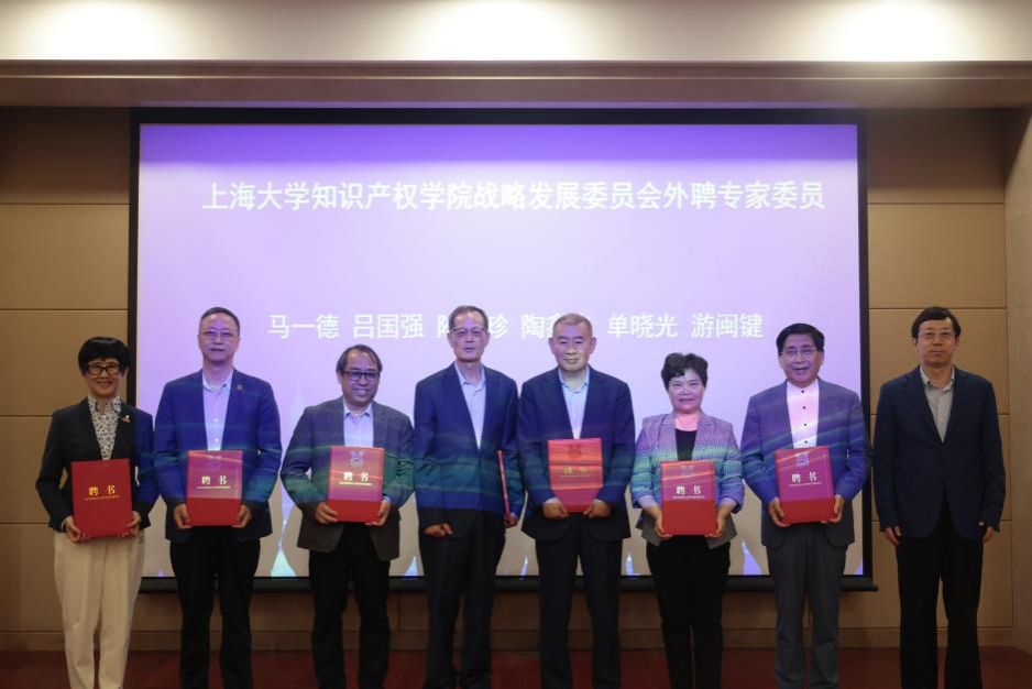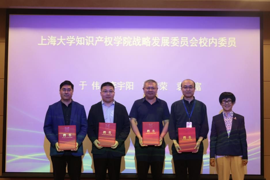 颁奖仪式之后,举行上海大学知识产权学院战略发展委员会专家委员聘任仪式,陈燕主任宣读委员会专家委员和校内委员名单。专家委员吸纳了知识产权领域的众多知名专家学者,包括中南财经政法大学原校长、教授吴汉东,北京大学国际知识产权研究中心主任、法学院教授易继明,中科院大学知识产权学院院长、教授马一德,上海市知识产权局原局长吕国强,上海知识产权法院原专职审委会委员、二级高级法官陈惠珍,上海大学知识产权学院名誉院长、教授陶鑫良,同济大学上海国际知识产权学院教授单晓光,华东政法大学知识产权学院院长、教授丛立先,上海市政协常委、协力律师事务所创始合伙人游闽键等,标志着上海大学知识产权学院在汇聚高端智力资源、推动知识产权学科发展方面迈出了坚实的一步。随后,段勇副书记为到场的专家委员颁发聘书,专家委员代表单晓光教授发表讲话,表达了对上海大学知识产权学院未来发展的全力支持和美好祝愿。