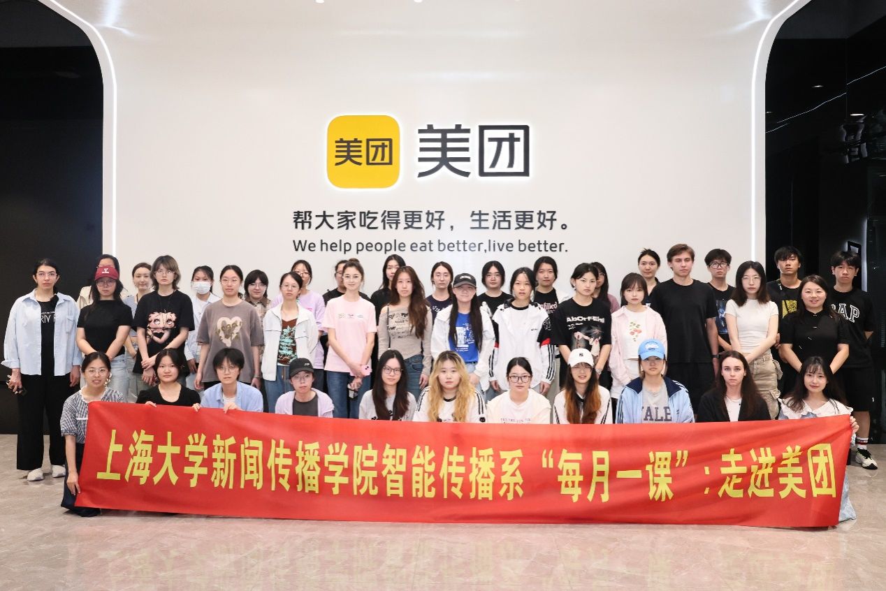 近日,上海大学新闻传播学院智能传播系“每月一课”第一课启动。在智能传播系张林老师的带领下,新传学院40余名网络与新媒体专业和新闻学专业的本科生及部分研究生和留学生赴美团上海综合指挥中心参访,并与美团党办相关负责人座谈交流。