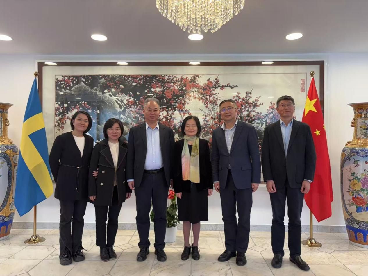 访瑞期间,代表团拜访了中国驻瑞典大使馆,与黄立琼参赞等进行交流,汇报了学校发展近况,并就发挥上海大学办学优势助力中瑞教育文化合作听取了使馆指导建议。