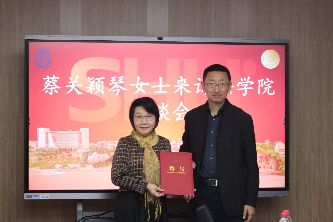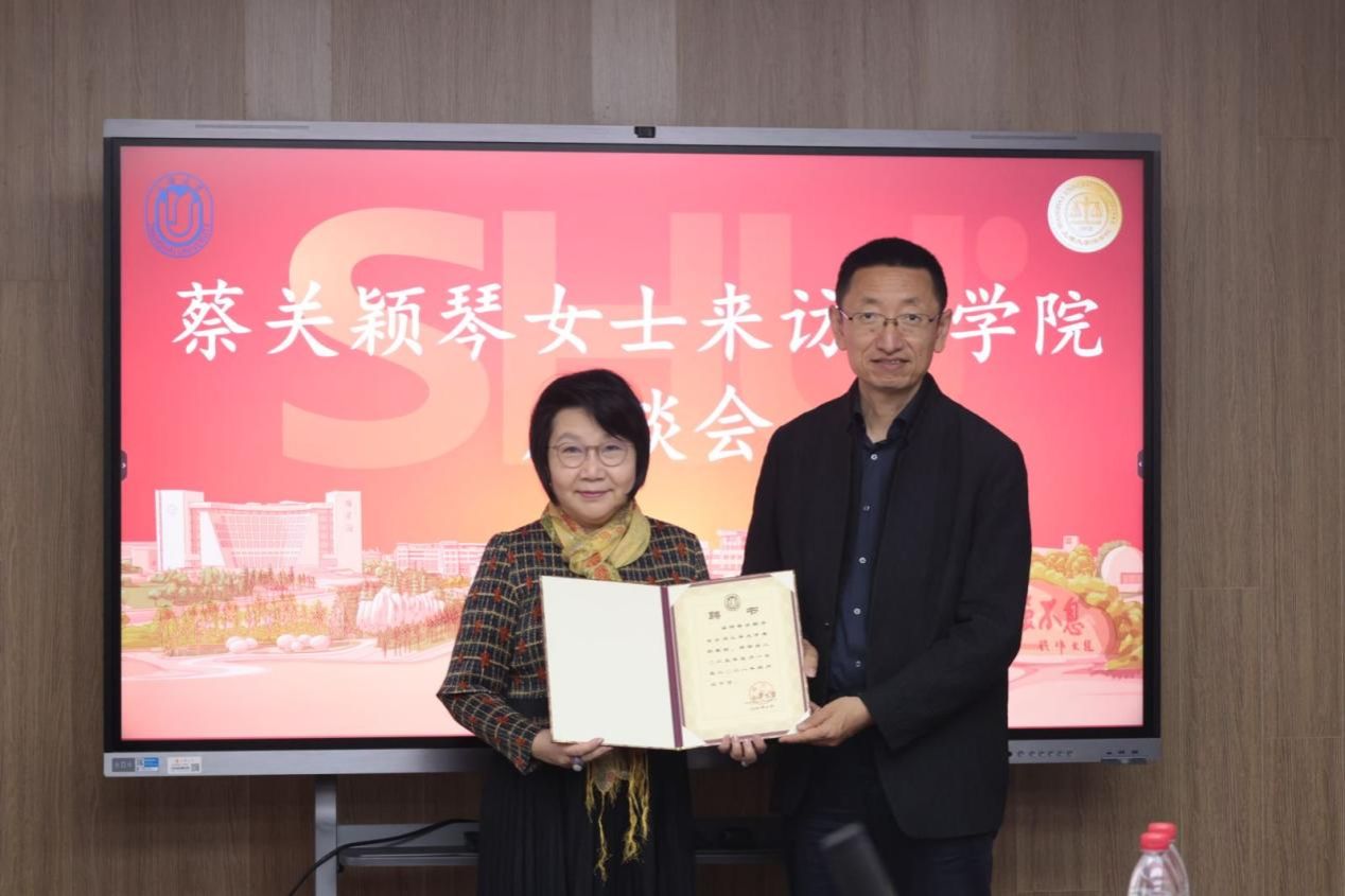 在随后的聘任仪式上,苟燕楠总会计师为蔡关颖琴女士颁发聘书,与会人员热烈鼓掌祝贺蔡关颖琴女士受聘担任上海大学知识产权学院战略发展委员会专家委员和上海大学兼职教授。