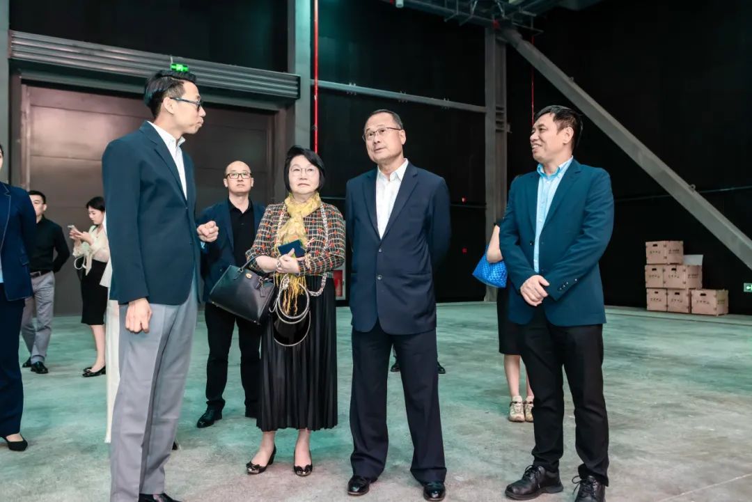 随后,蔡冠深主席一行走入上海电影学院摄影棚,沉浸式体验学院的实践教学环境。作为学院影视创作的重要实践基地,摄影棚配备行业领先的专业设备,全面满足影视制作的技术需求,充分彰显出学院现代化的教学设施与高质量的实践环境。通过现场演示和观摩,嘉宾们更为直观地感受学院从理论教学到实践操作的全流程培养模式,切实体验到“学院即片场”办学理念的具体实践成效。