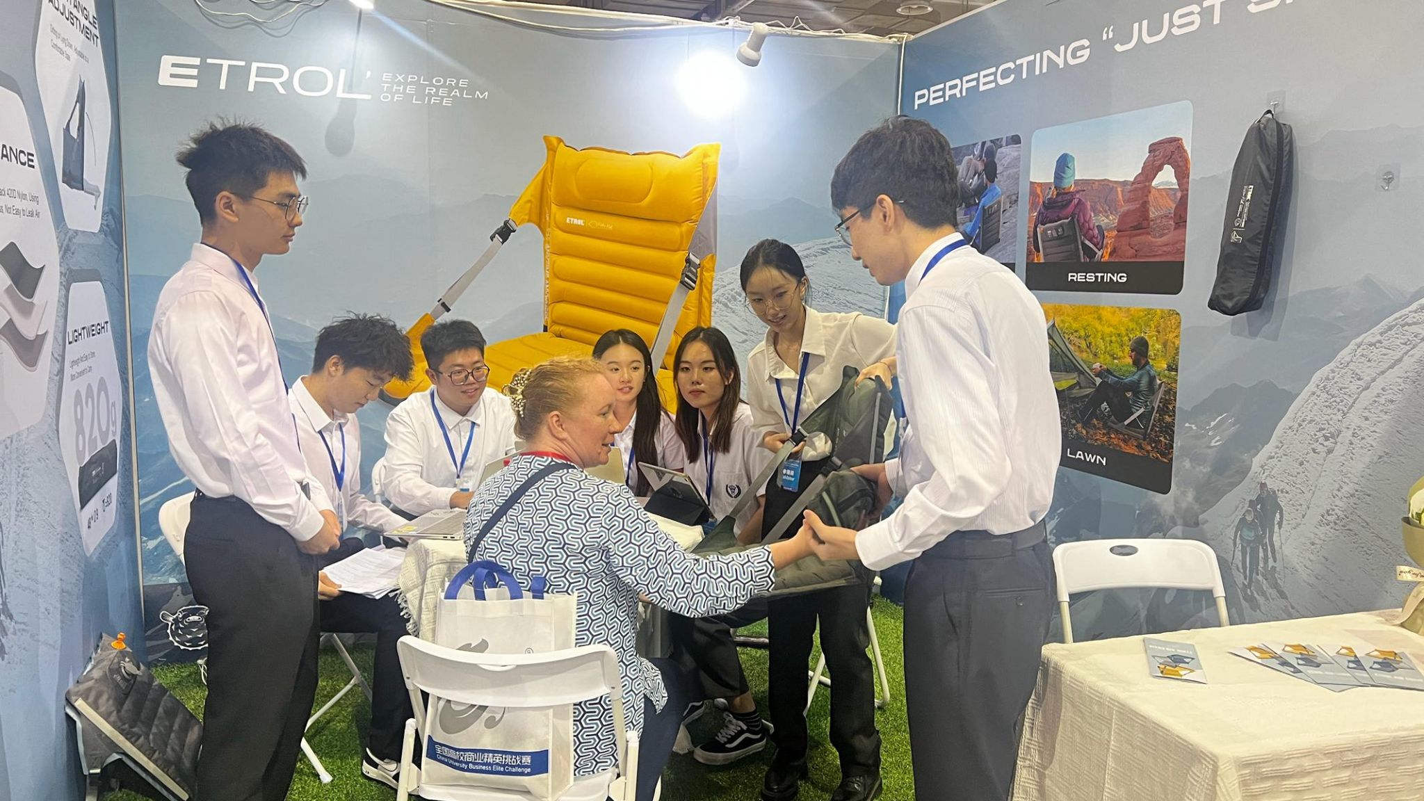 竞赛以2025年中国(宁波)跨国采购商品洽谈会暨2025年中国(宁波)品牌商品博览会形式举行。6月7日上午,比赛正式拉开帷幕。参赛队伍以中小企业名义,模拟了参展计划书撰写、展位海报设计与商品陈列、新产品发布会和商贸配对贸易谈判等多个环节。这不仅考验选手们的专业知识,更锻炼了他们团队协作、沟通表达和应变能力。上海大学代表队在产品介绍和商贸配对贸易谈判环节中展现出高水平的英语沟通能力和专业国贸知识,获得评委一致好评。在产品发布会环节,参赛学生以积极饱满的状态,创意展示产品卖点。最终,ETROL air chair队荣膺特等奖,ZeekLand Foldable Solar Camping Light队 与 Max Pump 3充气泵队双双斩获一等奖!由一年级国际学生组成的LikeMed AED队获二等奖,展现了悉尼工商学院中外学生融合培养的积极成果。