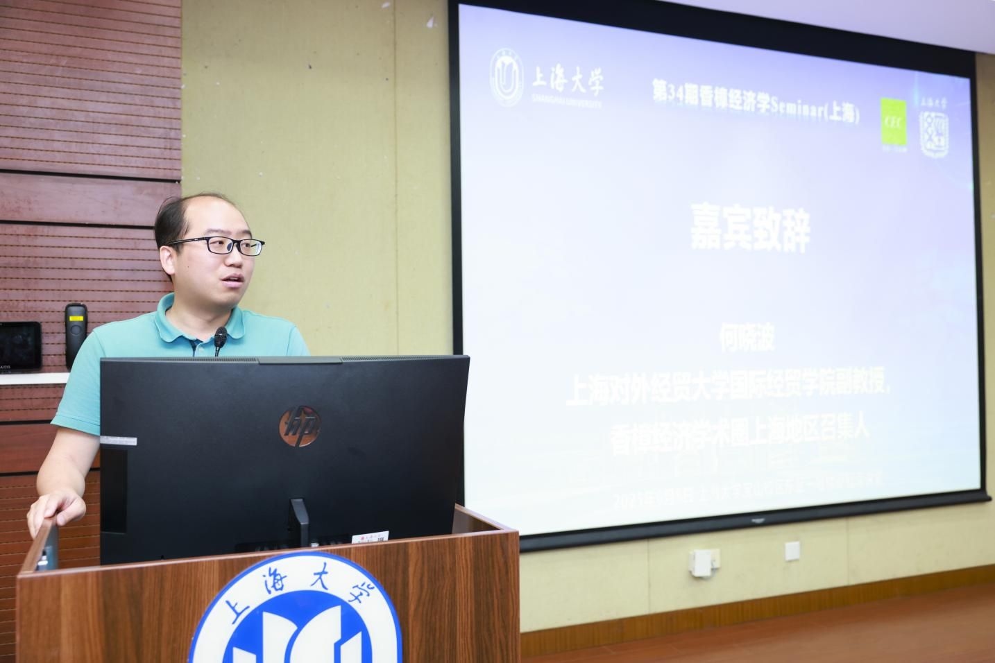 当天上午,研讨会于上海大学经管大楼蔡冠深讲堂准时拉开帷幕。上海大学经济学院党委副书记、常务副院长殷凤教授主持研讨会开幕式,殷院长对与会专家学者、老师和同学表示诚挚欢迎,向香樟经济学Seminar主办方的信任与支持表示感谢。上海大学经济学院党委书记尹应凯教授代表承办单位致辞,对与会学者嘉宾表示热烈欢迎和感谢,高度肯定香樟Seminar开放包容的学术生态,并表示上海大学经济学院将积极参与其中。香樟经济学术圈上海地区召集人、上海对外经贸大学何晓波副教授在致辞中回顾了香樟经济学Seminar的创立和发展历程,期待未来有更多机会与上海大学师生学生交流学习。