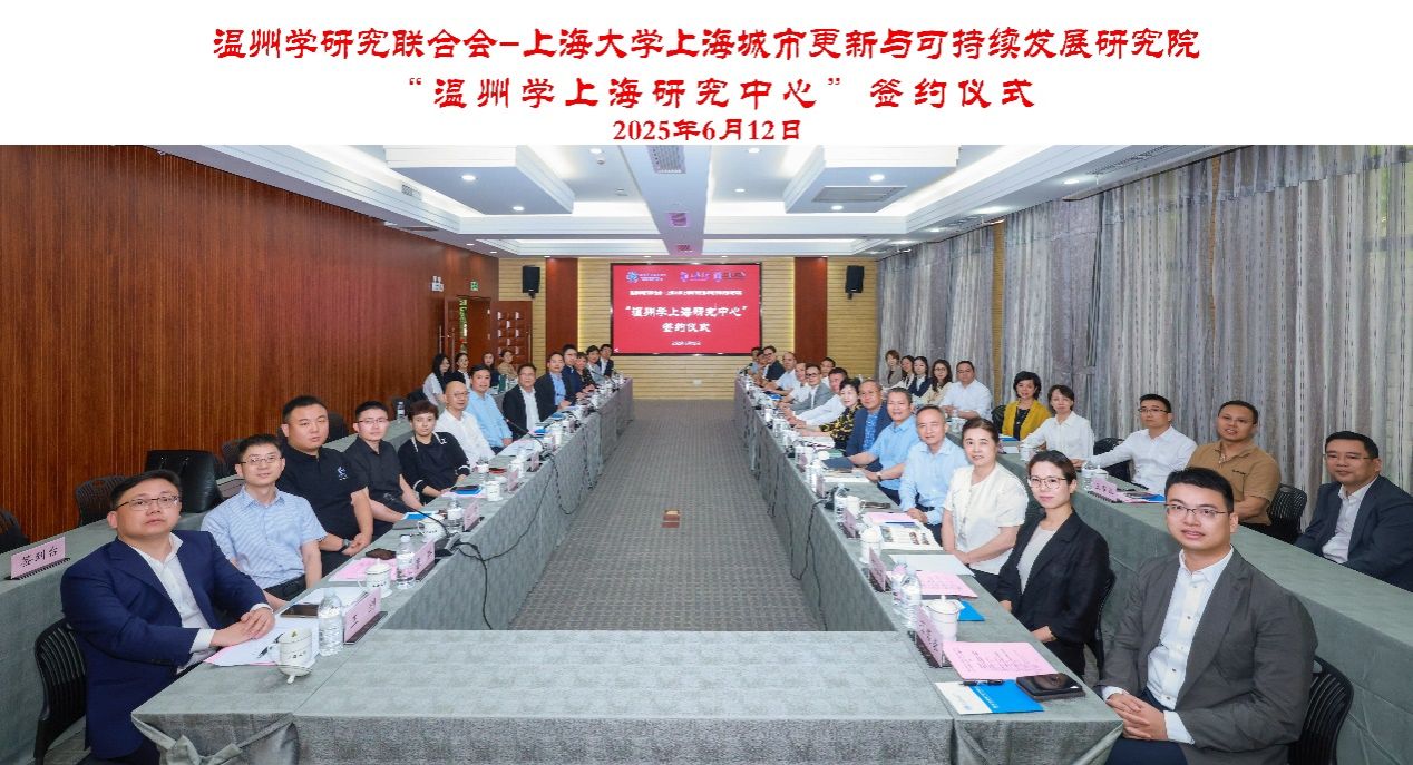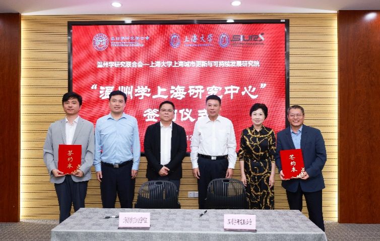 6月12日上午,温州学研究联合会与上海大学上海城市更新与可持续发展研究院合作共建“温州学上海研究中心”签约仪式暨座谈会在上海大学延长校区乐乎楼乐论厅举行。双方合作旨在探索以“地方学+城市更新”模式,协力打造首个位于温州市外的特色型、标杆式温州学研究机构,推动温州学理论体系构建,挖掘地方文化资源,赋能温州及长三角区域城市更新与高质量发展。