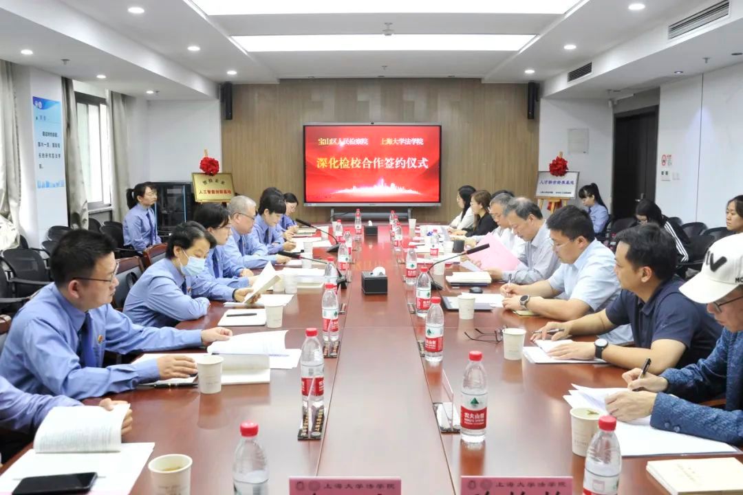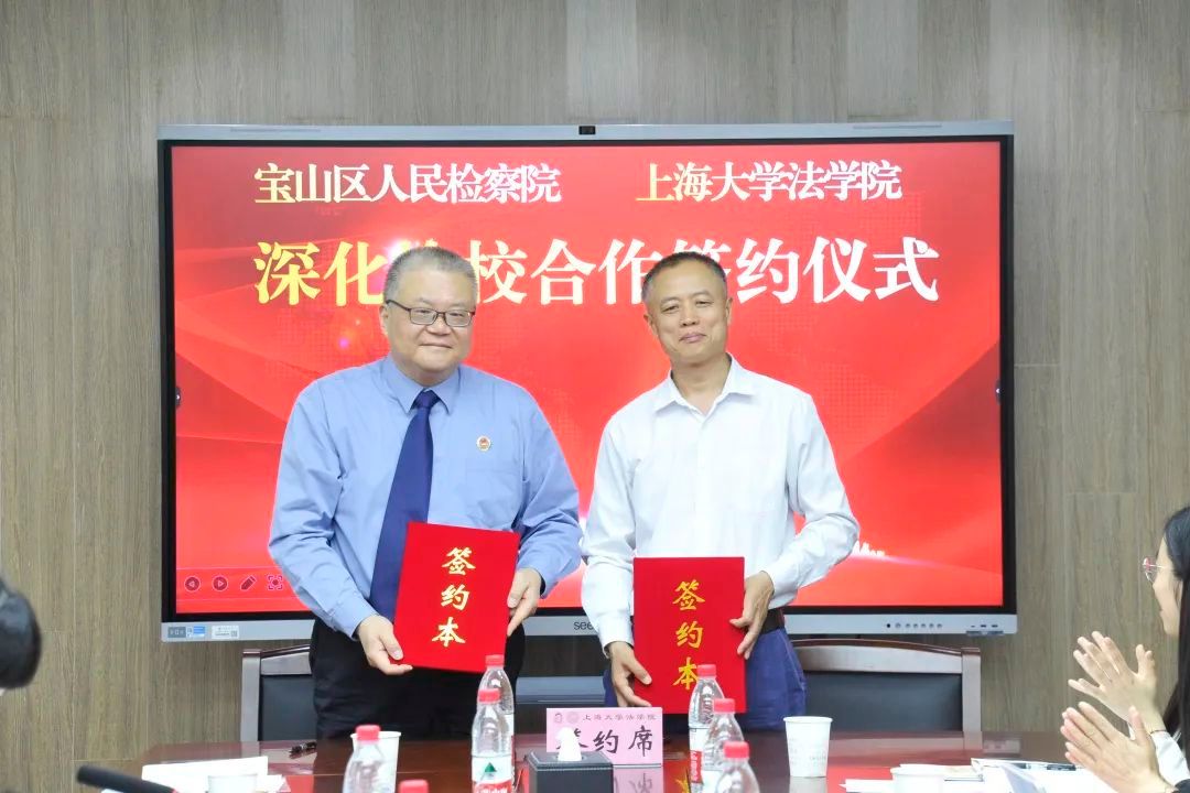宝山区人民检察院党组成员、副检察长王强与上海大学法学院党委副书记、院长李凤章签订《上海市宝山区人民检察院上海大学法学院关于进一步深化检校合作的实施意见》。