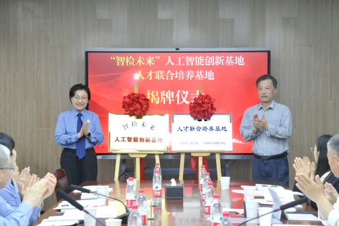 宝山区人民检察院党组书记、检察长孙琳与上海大学法学院党委书记徐国明为“智检未来”人工智能创新基地、人才联合培养基地揭牌。