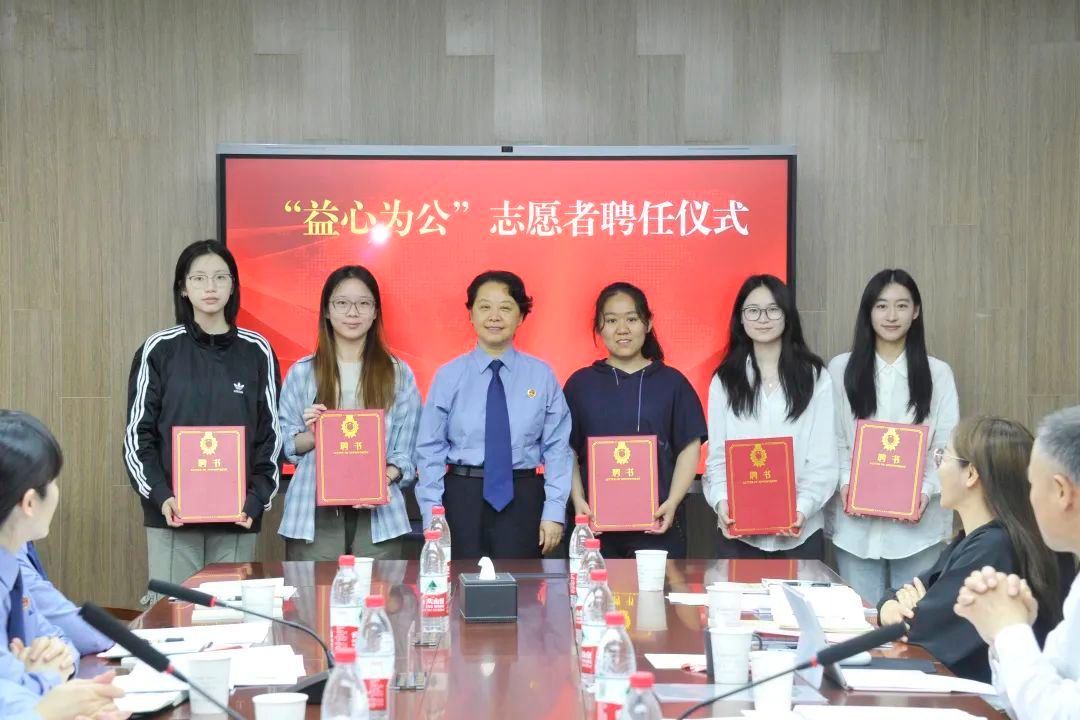 宝山区人民检察院党组成员、副检察长房长缨为上海大学法学院“益心为公”志愿者代表颁发聘书。