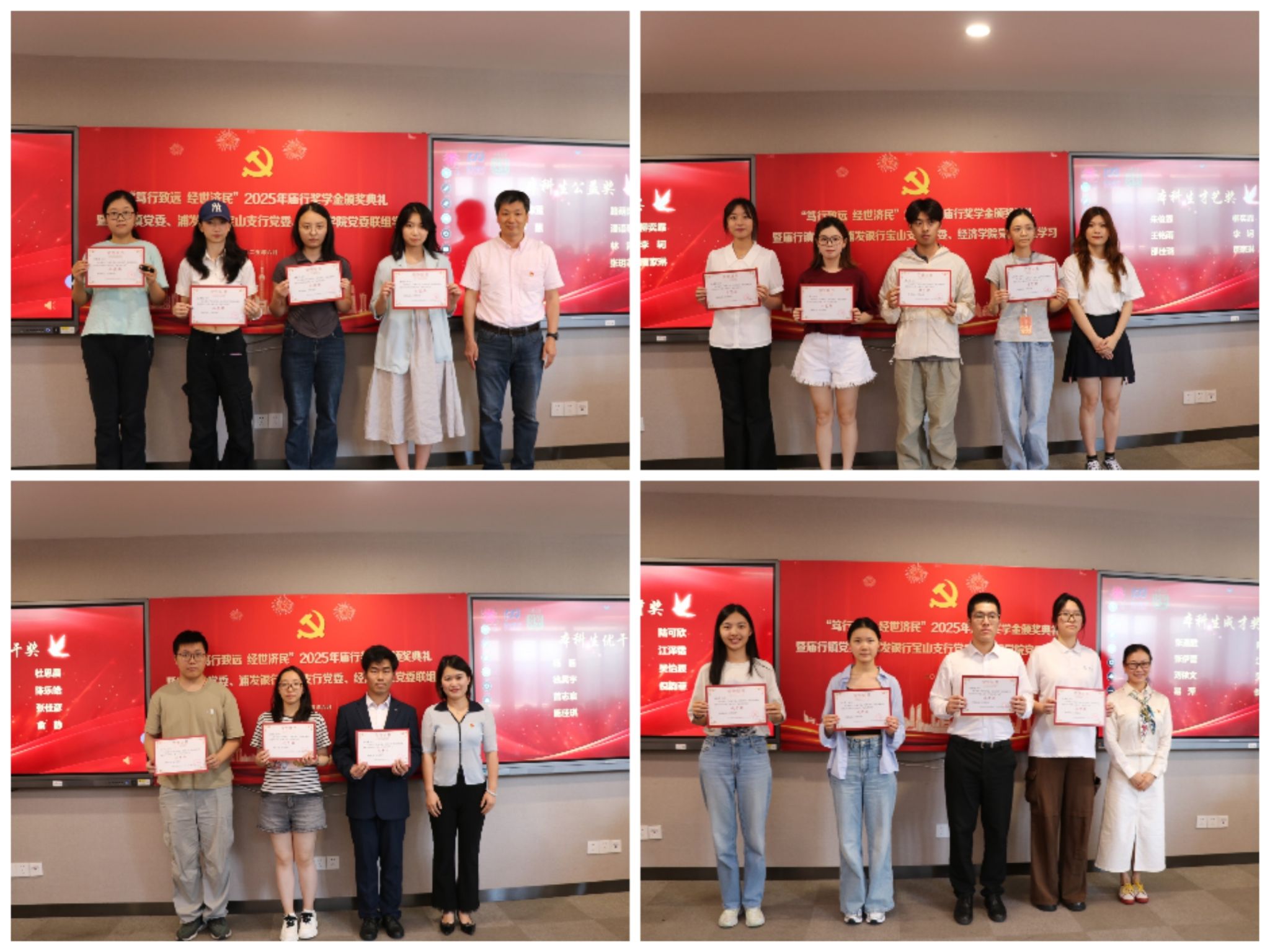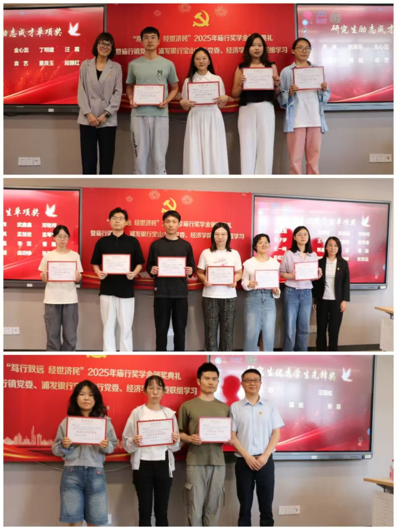 6月16日下午,“笃行致远经世济民”2025年庙行奖学金颁奖典礼暨庙行镇党委、浦发银行宝山支行党委、经济学院党委联组学习在上海大学宝山校区经管楼580举行。庙行镇、浦发银行、经济学院领导代表出席,“庙行奖学金”获奖学生代表参加活动。