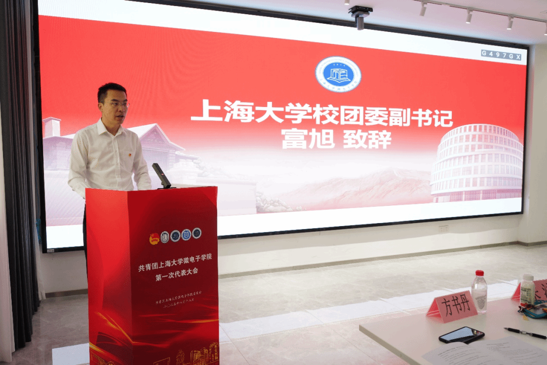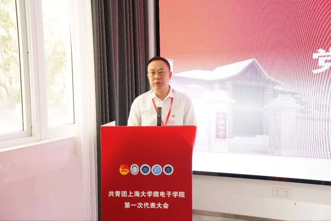 上海大学团委副书记富旭老师代表校团委祝贺大会召开,对微电子学院团委近年来取得的工作成效给予高度评价。他指出,微电子学院作为重点建设的学院,学院团委在院党委和校团委的领导下,紧扣立德树人的根本任务,用党的科学理论武装青年,加强组织建设,打造学生骨干队伍。希望大家牢记 嘱托,珍惜时光、钻研专业,将个人成长与国家发展结合,在集成电路领域勇攀高峰。