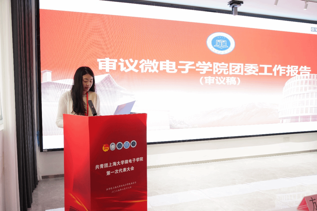 6月18日,共青团上海大学微电子学院第一次代表大会在嘉定校区微电子学院A楼101多功能厅顺利召开。上海大学团委副书记富旭老师,微电子学院党委副书记、副院长袁铭老师,法学院团委书记杨晓彤老师,微电子学院辅导员方书丹老师、朱沁老师、宗琪老师及学生代表出席本次大会。大会由微电子学院23级硕士研究生吕萧纹主持。