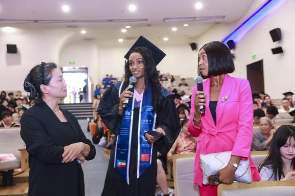 宣誓完毕,文艺表演环节以多元艺术形式传递毕业情怀。本科毕业生朱俊霖、李诗航等六位同学深情演绎《你曾是少年》,用歌声勾勒青春蜕变的轨迹;硕士毕业生端木鑫怡带来古典名曲《阳关三叠》,指尖流淌的旋律与诗词意境交融,诉说离别之际的不舍与祝福;国际学生潘保如以一首《Breakaway》点燃全场热情,动感的节奏与励志的歌词呼应毕业生“破茧成蝶”的成长;来自俄罗斯、哈萨克斯坦的国际学生玛丽娜、瑾瑜、卡米拉共同演唱《If Love Lives in the Heart》,多语言合唱展现经济学院国际化办学的特色,也让现场沉浸在跨越国界的温情中。