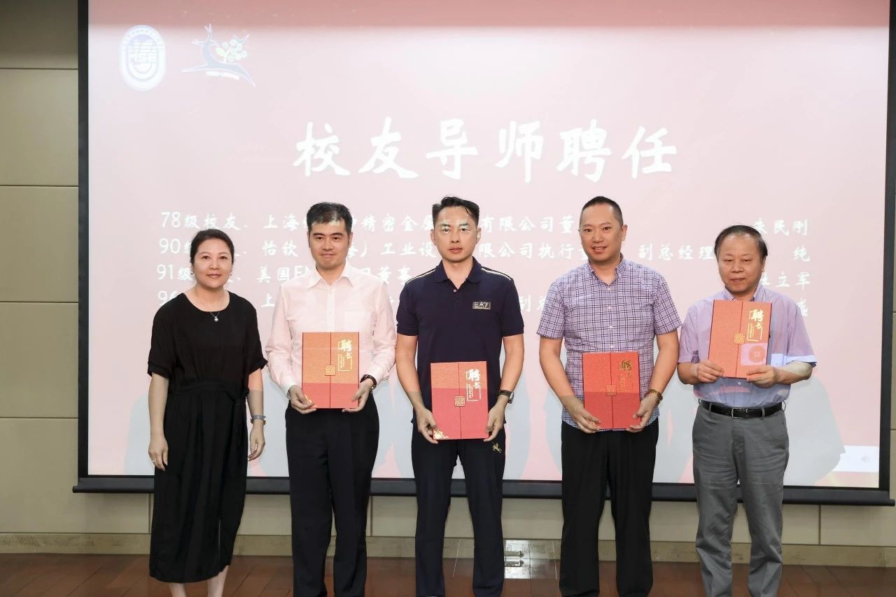 为深化校友协同育人,现场还聘任了一批校友导师,上海大学招生就业处处长陆瑾老师为78级校友朱民刚,90级校友郭纯,91级校友杜立军和96级校友陈盛颁发校友导师聘书。