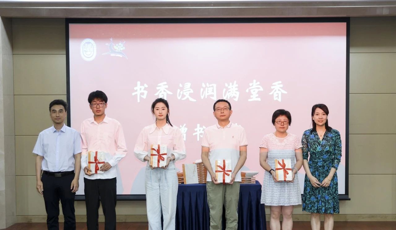 为将陆翠兰老师的精神财富传递给更多师生,大会举行了新书赠书仪式。陆翠兰老师家人代表山凌和材料学院党委书记黄健共同向师生代表赠书。