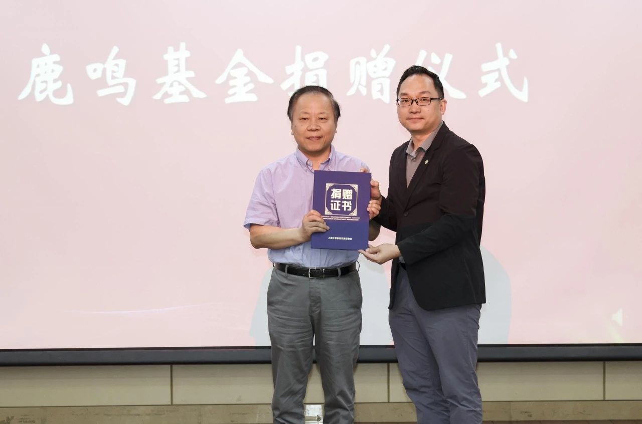 鹿鸣基金的发展离不开校友的慷慨支持与深情反哺。朱民刚校友持续助力学院人才培养事业,多次为鹿鸣基金捐赠。上海大学对外联络处处长、校友办公室主任陈然老师为朱民刚校友颁发校友捐赠证书。