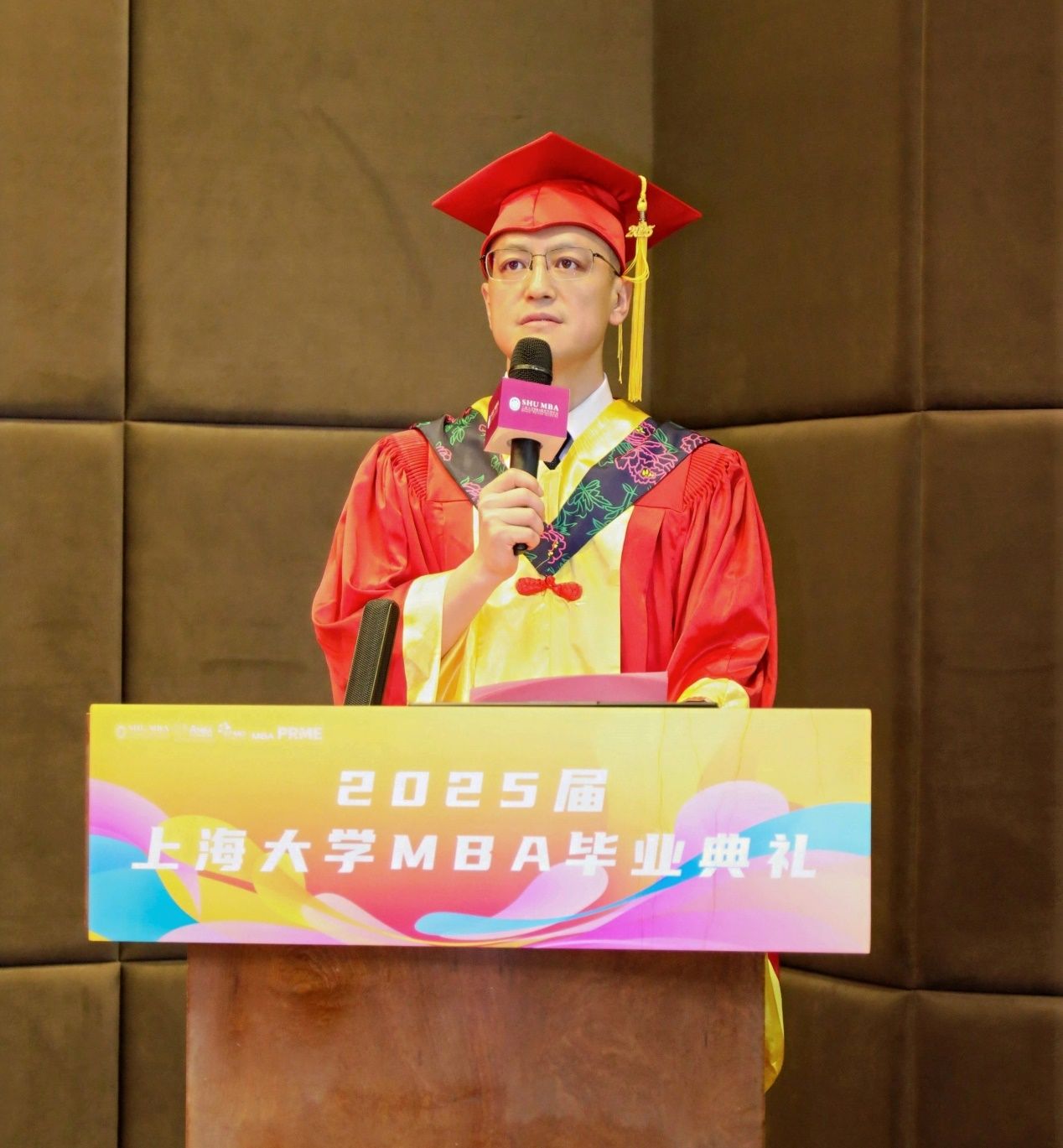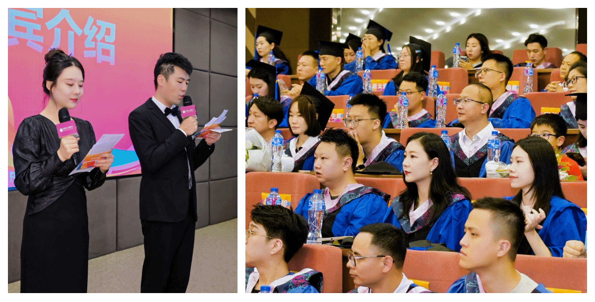 出席典礼的有上海大学党委常委、副校长、MBA管理委员会主任聂清,上海大学MBA中心主任、管理学院副院长于晓宇,上海大学审计处处长、经济学院党委书记尹应凯,管理学院副院长赵红丹,管理学院会计系主任李远勤,管理教育研究院副院长、管理学院工商系副主任王家宝以及兼任MBA中心各方向主任的纪颖、单娟、刘涛、邹海亮、薛奕曦、贾迎亚老师等,教师代表何树全、任永平、李燚、戴德宝、刘婷老师等,论文导师代表王红、陈跃刚老师等和MBA中心的企业导师曹献凯、陈东辉、陈挺、李浩翔、李锐、林国雄、齐晓斋、王凯、郑永强、朱皓等以及校友代表易可昕,与毕业生们共同分享这一重要时刻。23级MBA学生刘子凡、马措主持本次典礼。