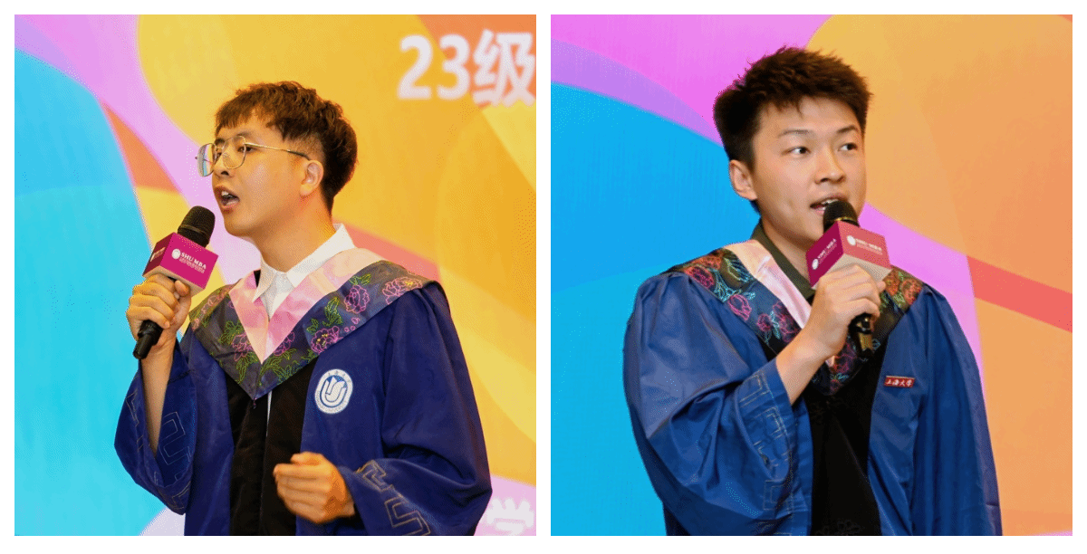 他分享了在上海大学MBA学习期间的感悟与收获,表达了对未来职业生涯和个人发展的无限憧憬与坚定信心,展现了新一代商界精英的抱负与担当。真挚的情感引起了全场毕业生的强烈共鸣。